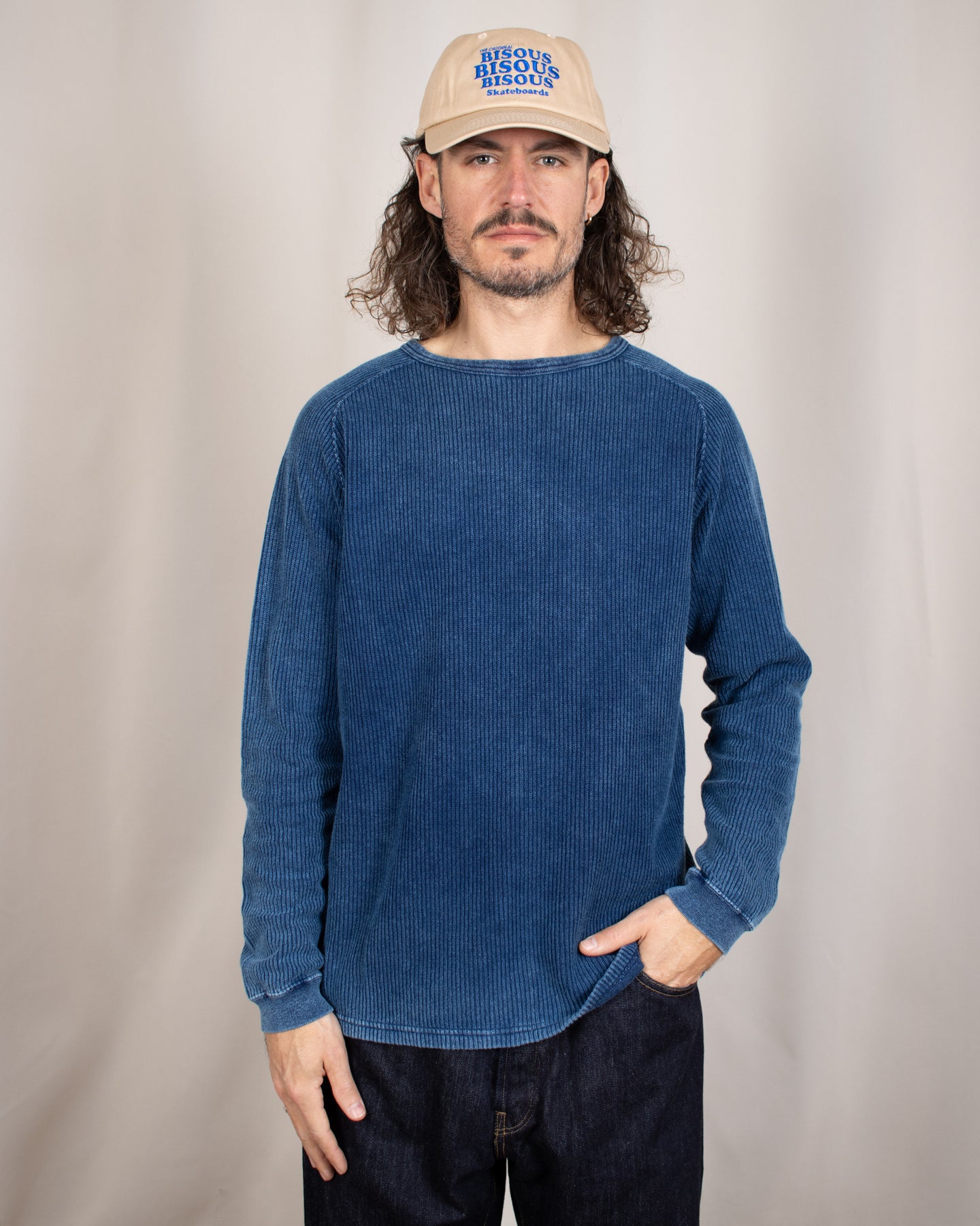 Long Sleeve Rib Knit Indigo