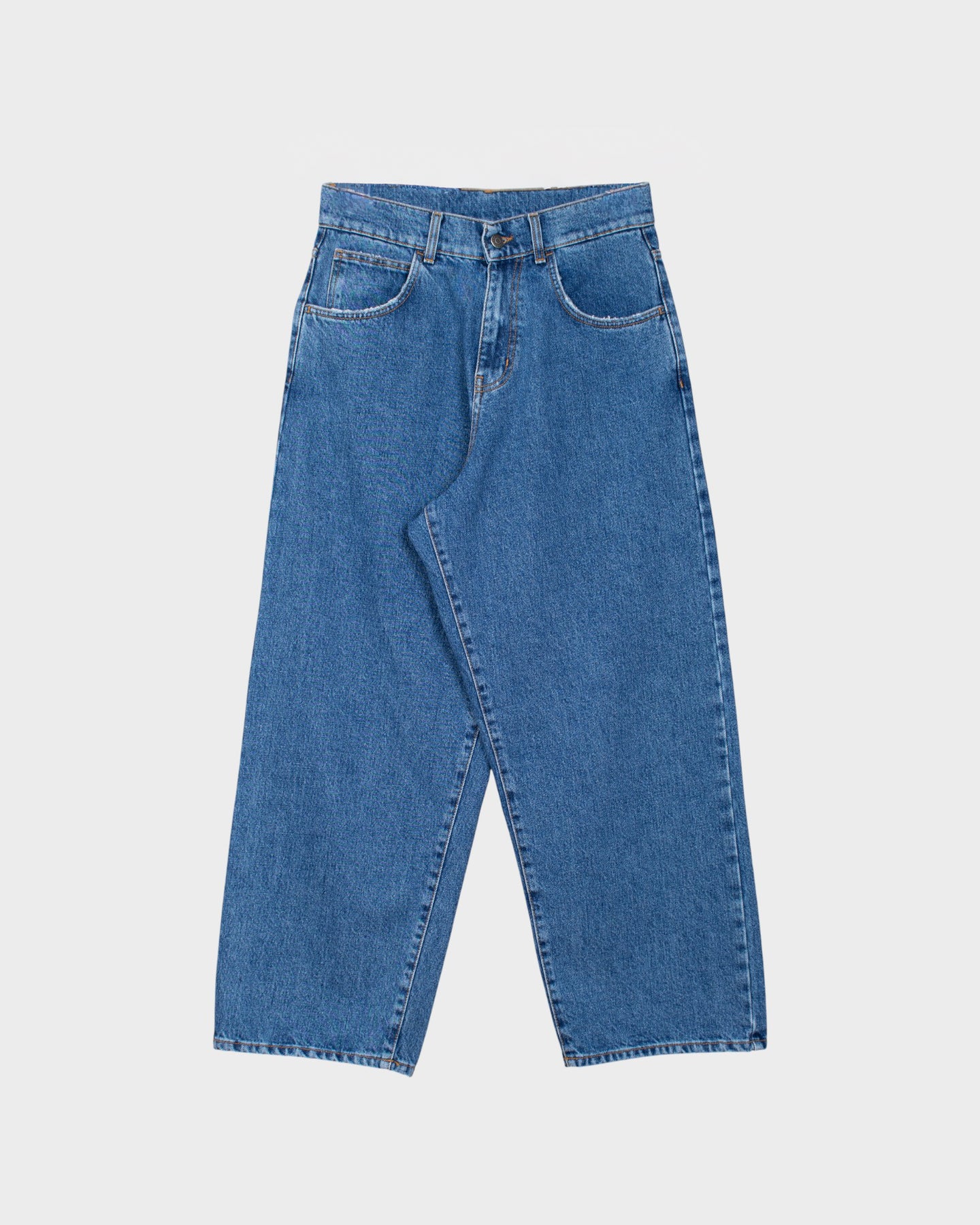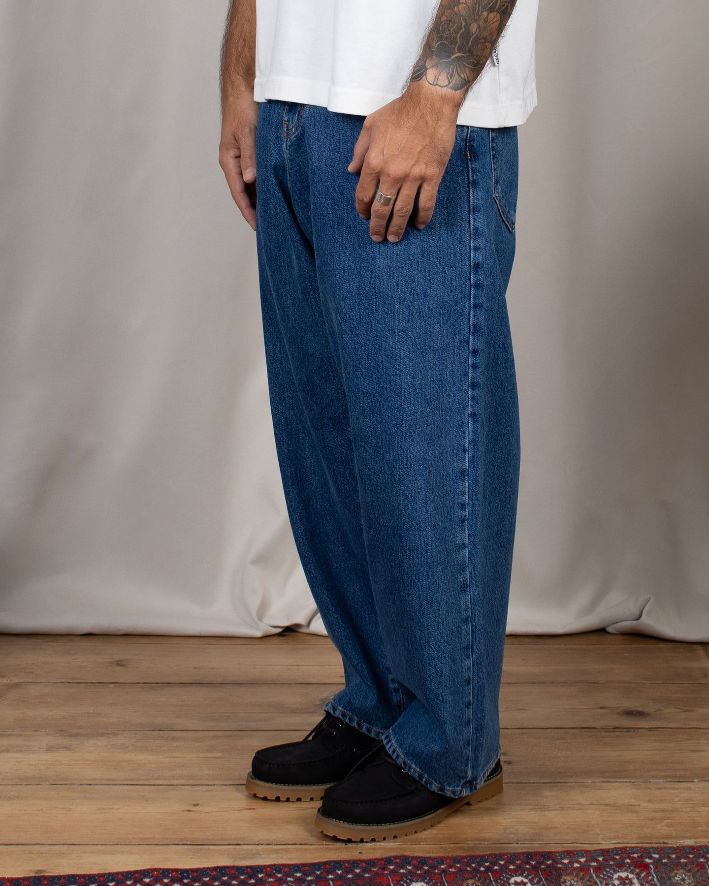 Ce jean taille normalement et se porte ample, n'hésite pas à te référer à notre guide des tailles. Sur les photos Alexis porte également un bonnet Nitto Knitwear, un gilet sans manches Coldbreaker, un tee-shirt Regards et des chaussures Garment Project.