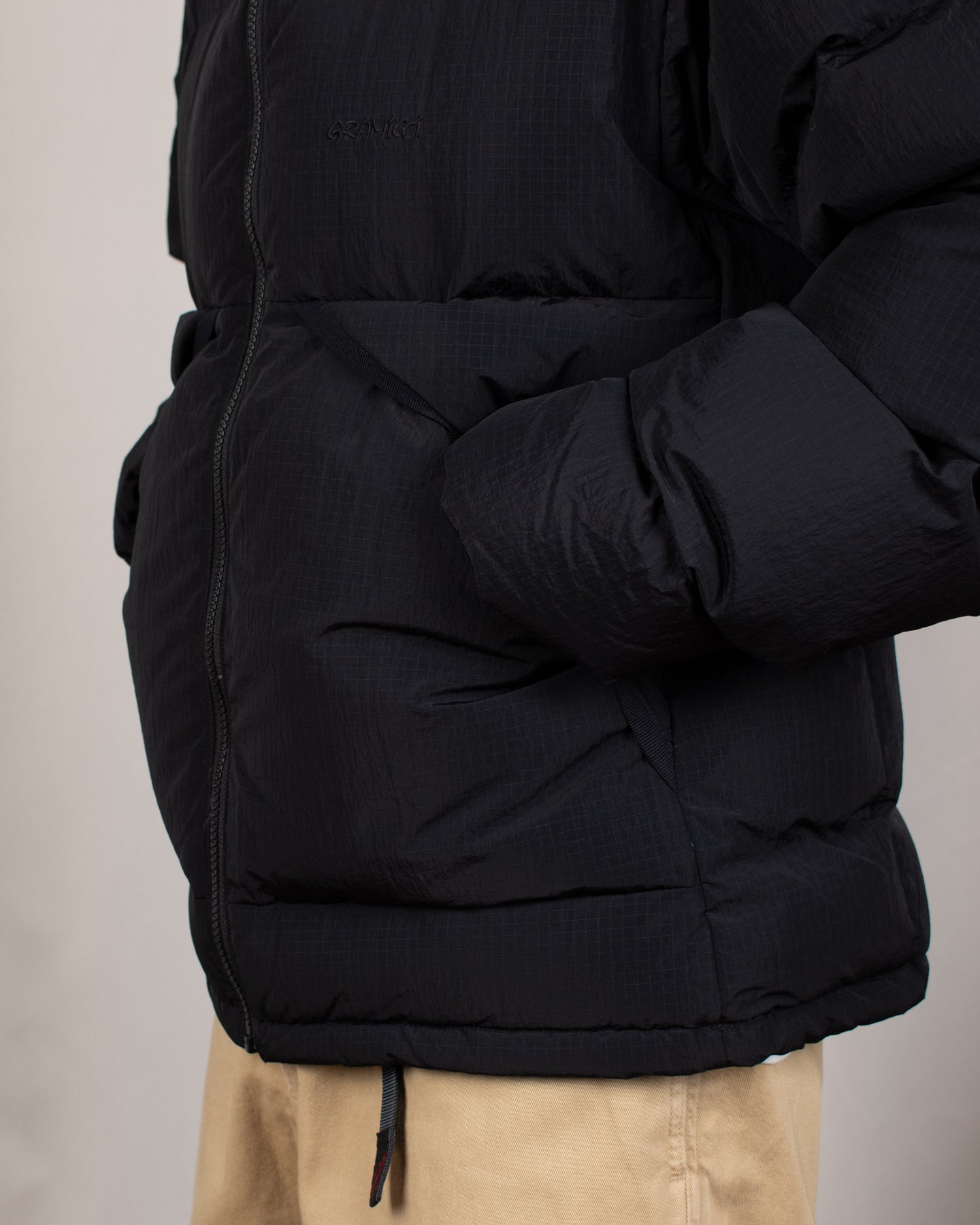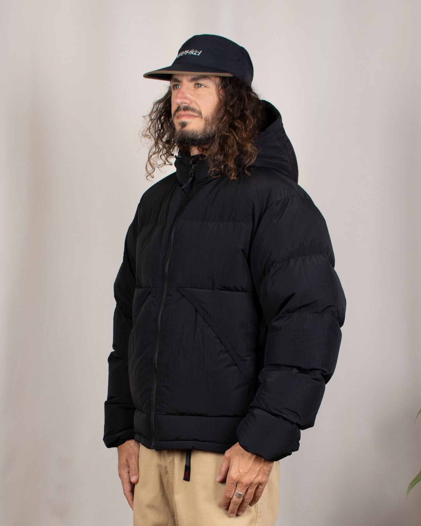 La Down Puffer Hooded Jacket de chez Gramicci est une doudoune à capuche unisexe à la coupe boxy, une pièce chaude et stylée qui se révèle être une véritable armure hivernale. Une bombe de chaleur qui allie tradition montagnarde et performances modernes. Son mélange de duvet 80/20 offre une chaleur sans compromis, tandis que sa capuche réglable protège des conditions difficiles. Son tissu ripstop indéchirable, ses deux poches pour les mains avec rabats et sa poche intérieure zippée en font également une pièce fonctionnelle et résistante.
