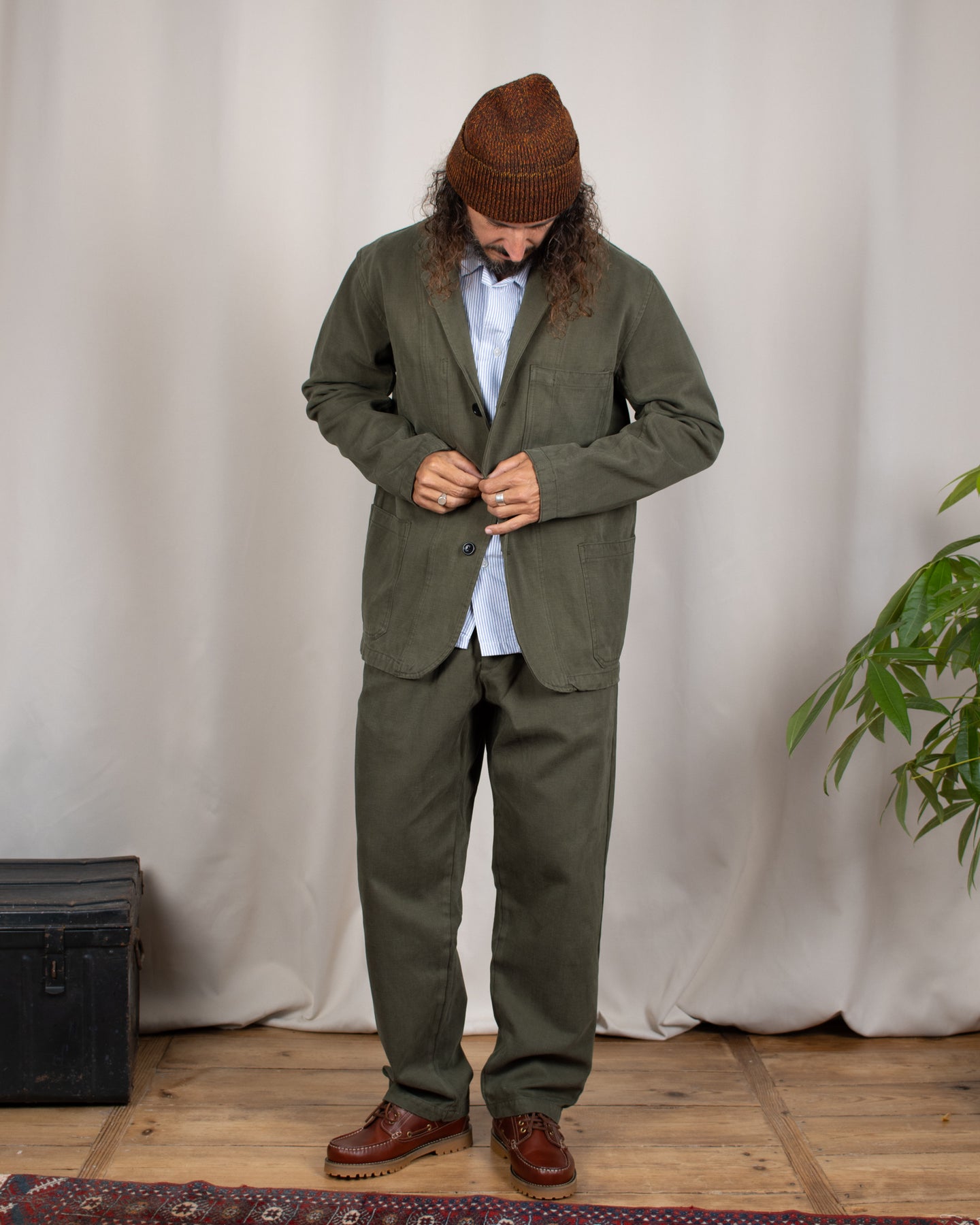 La MoleskineServer Suit jacket de chez Service Works est une veste à la coupe droite décontractée qui reprend les codes de la veste de travail dans un registre plus formel. Dans cette version hivernale elle est proposée dans une moleskine épaisse en 100% coton biologiqueau toucher ultra doux. Dotée de trois poches plaquées et d'une fermeture à trois boutons, cette veste est pensée pour apporter une petite d'élégance tout en étant confortable.