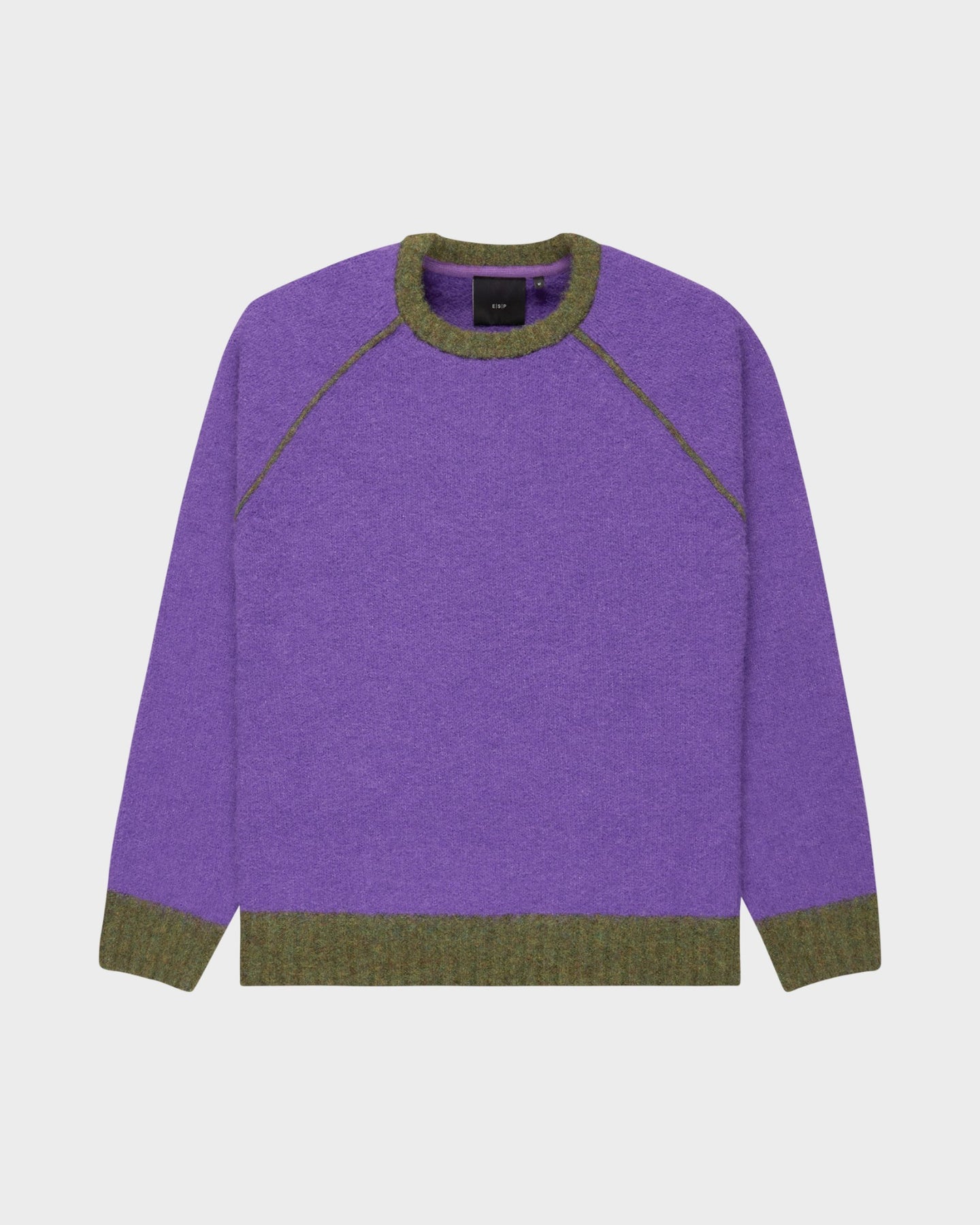 La Crewneck Sweater de chez ESP est un pull col rond à la coupe boxy doté de manches raglan procurant un maximum de confort. Un pull à l'allure moderne et sophistiquée confectionné en matières recyclées, sa couleur violet apportera une touche de peps à tes tenues hivernales.