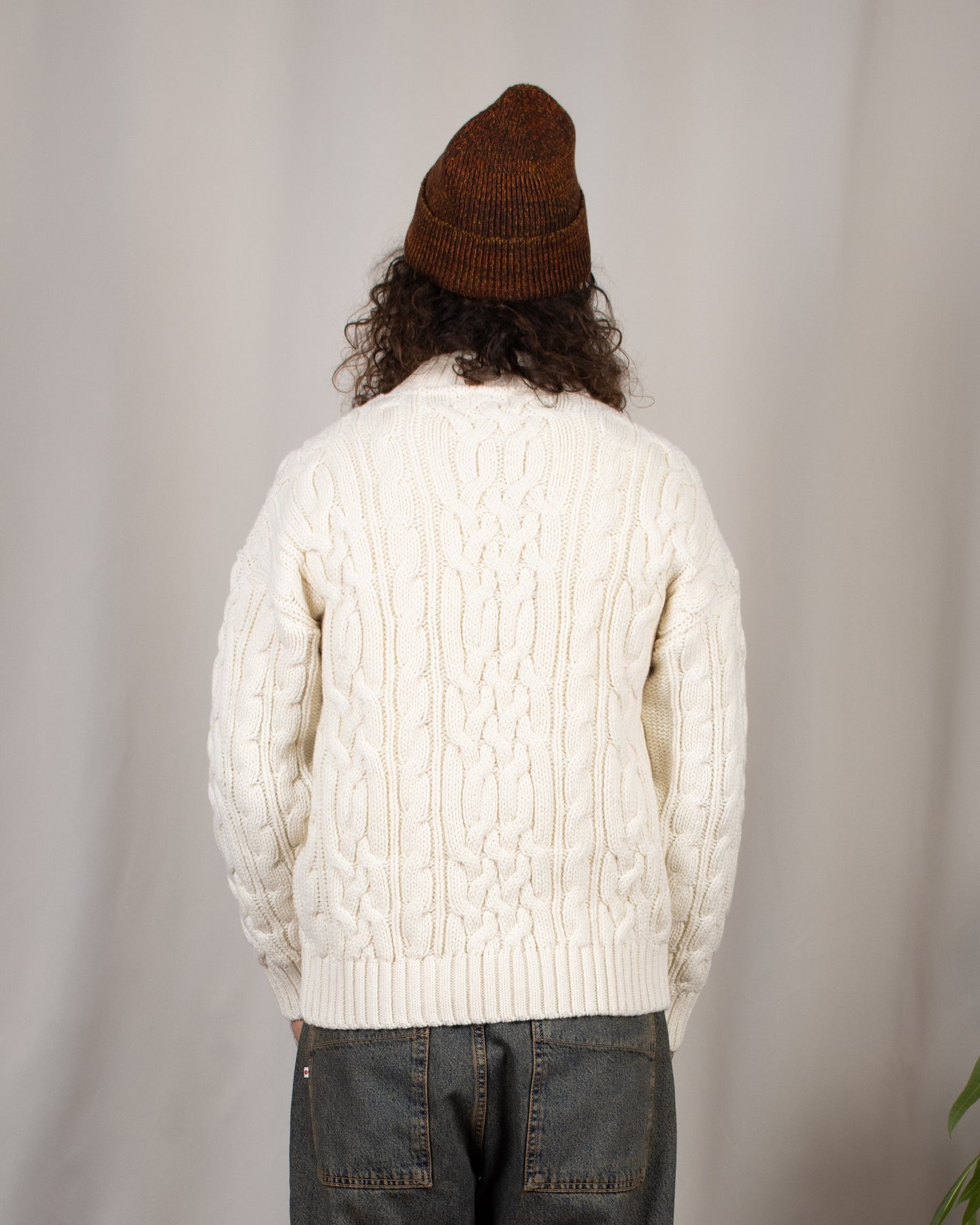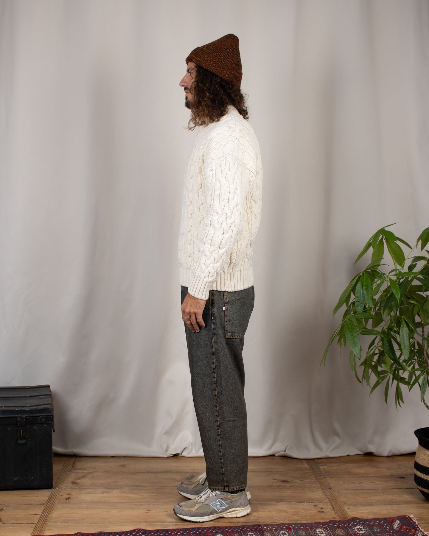 Le pull Ohannes à col rond de chez Nitto Knitwear est un pull de pêcheurs revisité à la coupe boxy avec une épaule tombante et des bords-côtes imposants lui conférant cette allure moderne. Confectionné dans un mélange de laine recyclée, confortable et chaud, ce pull est le compagnon idéal pour affronter les journées hivernales avec style. Comme le reste des modèles de la marque, il a été entièrement fabriqué en France dans l'atelier familial à Clamart.