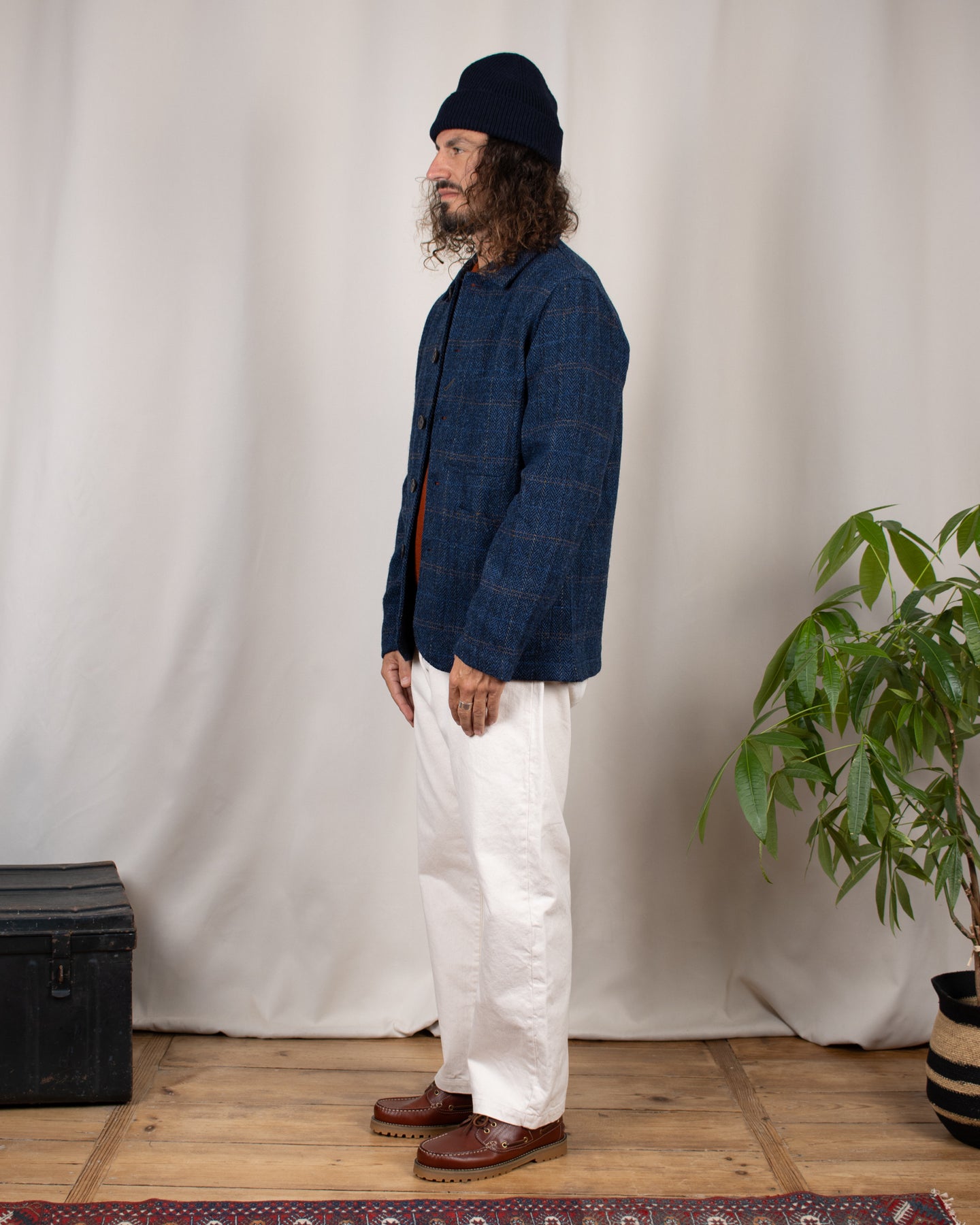 La Bakers C Jacket de chez Universal Works est une veste emblématique de la marque reconduite au fil des saisons. Dans cette version hivernale elle est confectionnée à partir d'un somptueux tissu à chevrons en 100%laineHarris Tweed spécialement conçu pour Universal Works, un tissu qui fait ses preuves depuis 1906. Elle dispose d'une coupe de droite, d'une fermeture à cinq boutons, de trois poches plaquées et d'une boutonnière en angle spécifique à ce modèle.