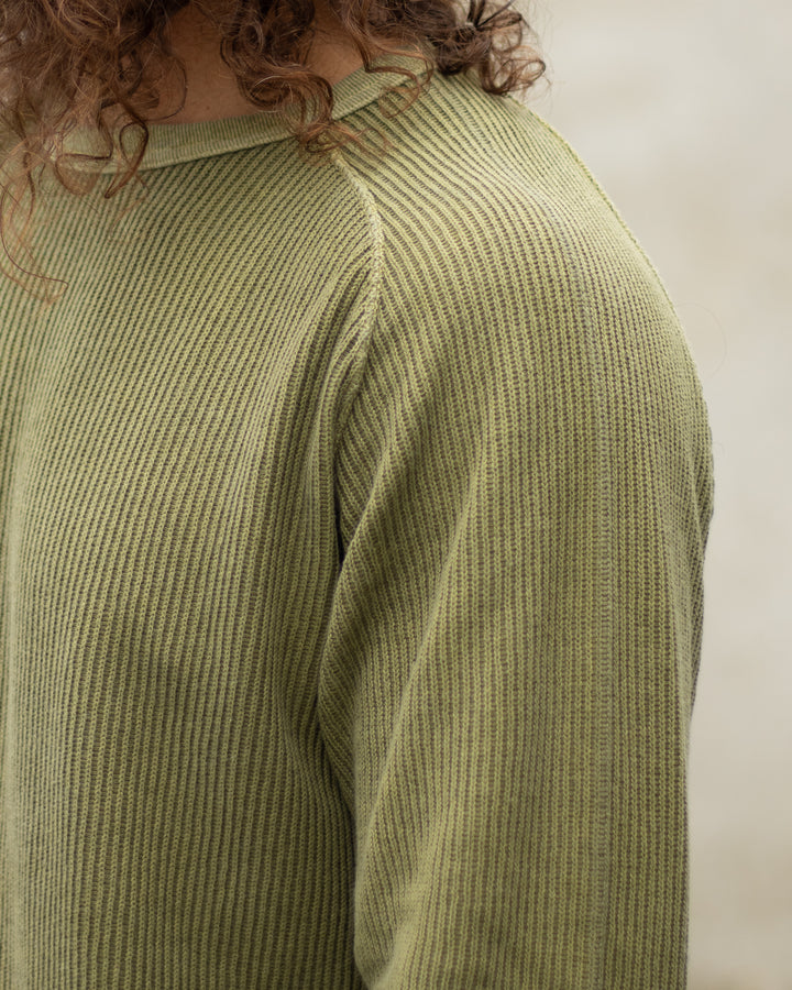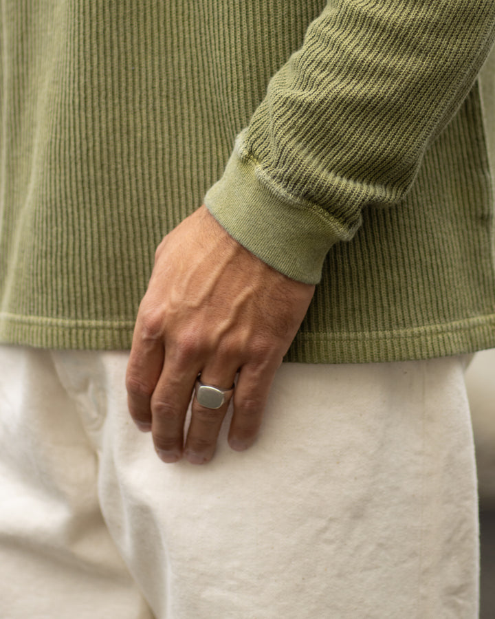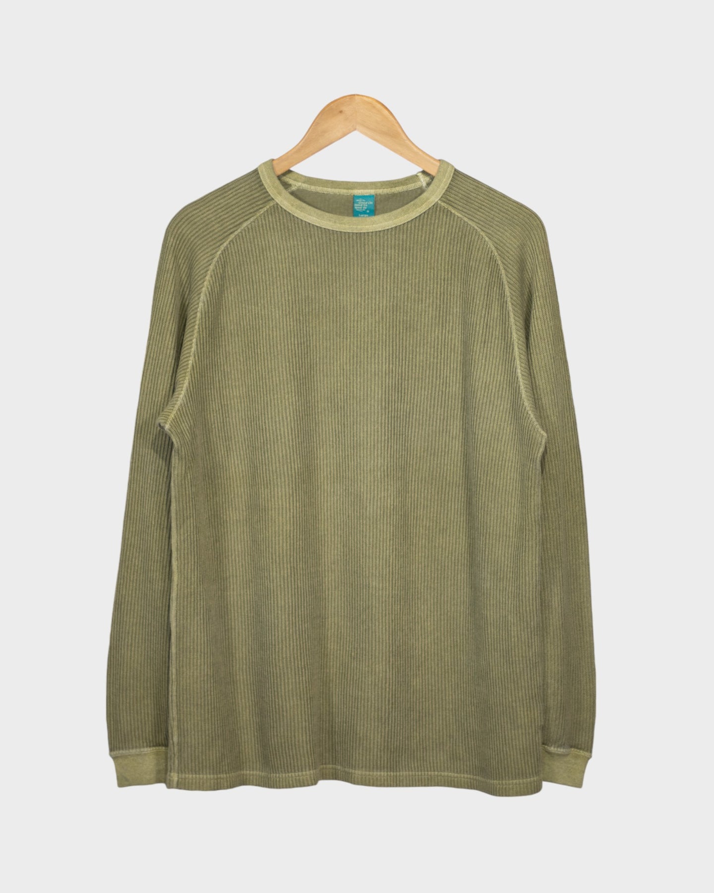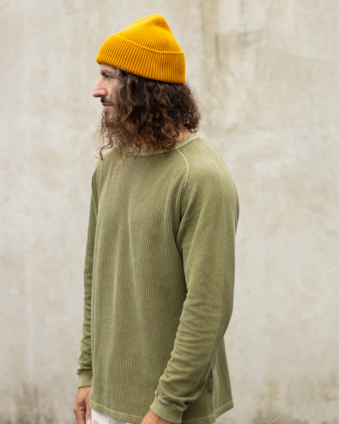 Le Long Sleeve Rib Knit de chez Good On est un tout nouveau design de la marque. Un tee-shirt à manches longues tricoté dans un coton épais texturé ultra doux. Il est doté d'un col rond, de manches raglan pour un plus grand confort et d'une coupe droite décontractée. Il est entièrement fabriqué et teint au Japon en utilisant le procéder de teinture pigmentaire propre à Good On, conférant à chaque pièce une patine unique et un style vintage qui lui permettra de s'embellir avec le temps.