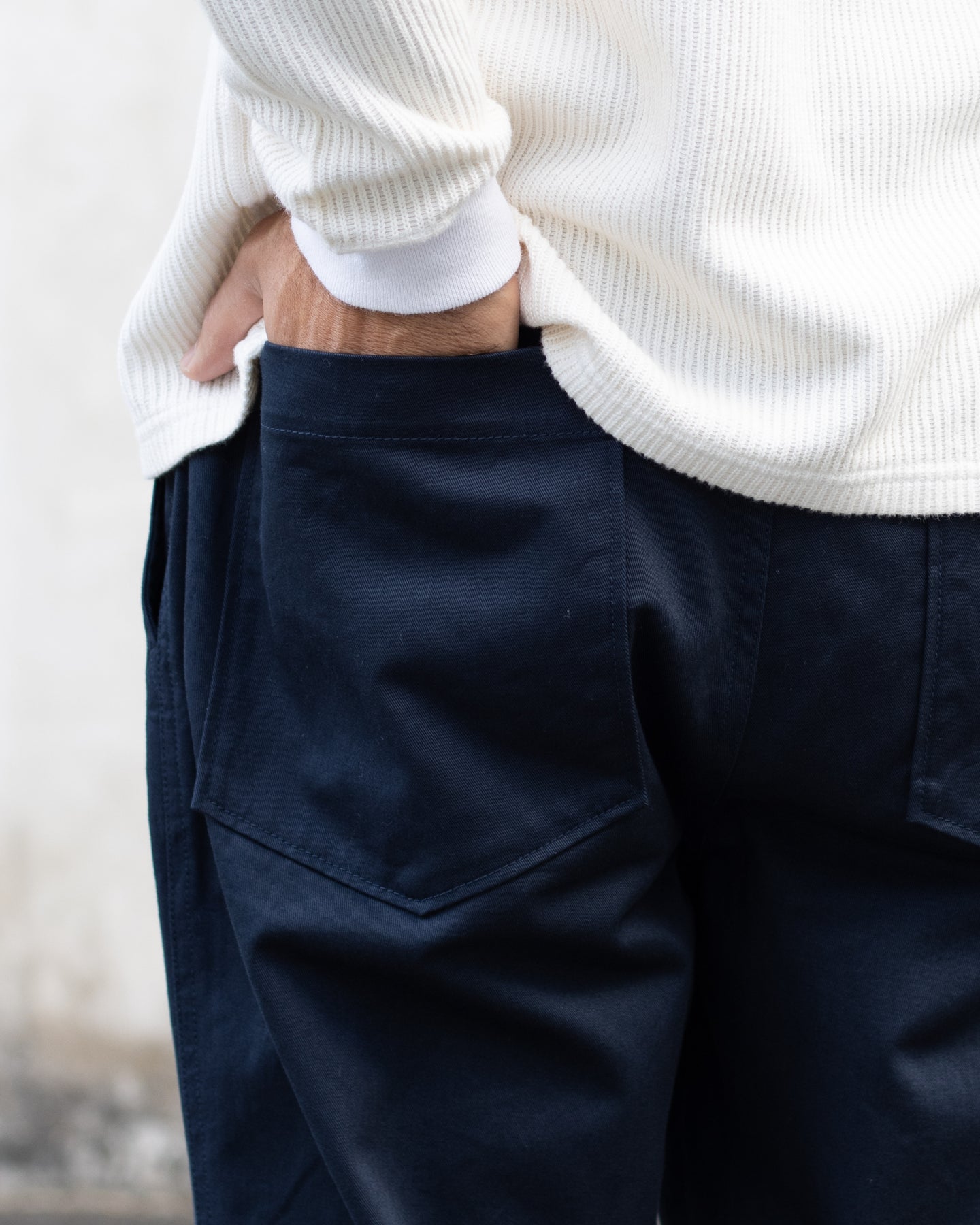 Le Hi Water Trouser de chez Universal Works est un pantalon au design épuré à la coupe ample et décontractée avec une jambe raccourcie très légèrement fuselée. Ce pantalon ultra confortable a été pensé pour se porter au dessus de la cheville, il est doté d'une taille élastiquée avec un cordon de serrage, de 2 poches latérales et de 2 poches arrières plaquées.