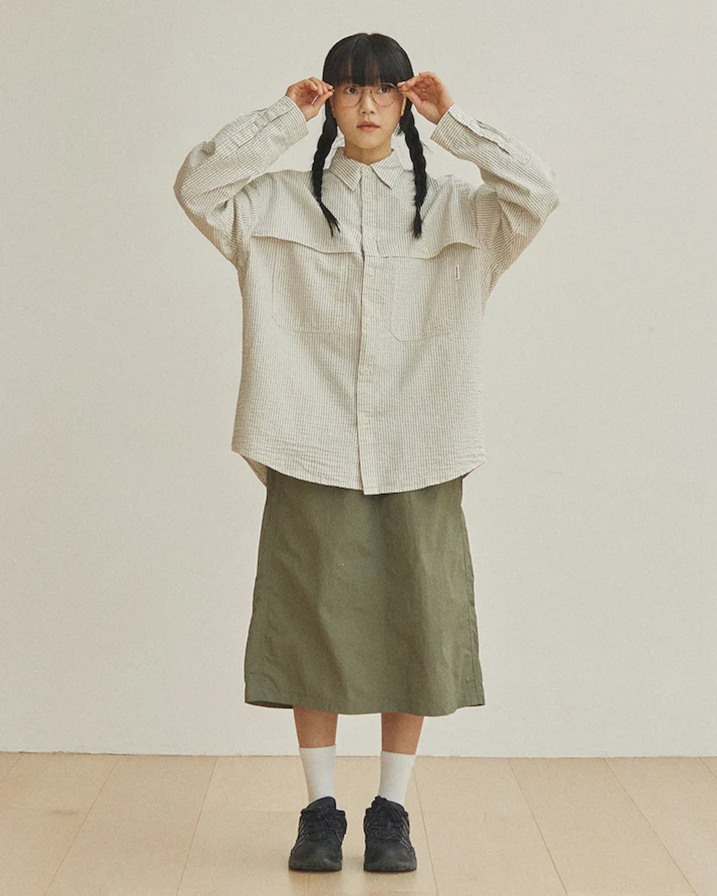 La Stripe Pocket Work Shirt de chez Kappy Design est une chemise unisexe à la coupe ample et contemporaine, pensée pour allier confort et style effortless. Confectionnée dans un tissu 100% coton texturé, elle se distingue par son motif à rayures et ses deux poches subtilement intégrées sur le devant, qui apportent une touche graphique subtile à la silhouette. Avec sa coupe fluide et sa taille unique adaptable à toutes les morphologies, cette chemise s’accorde facilement avec un pantalon ample ou un short pour une tenue casual maîtrisée.