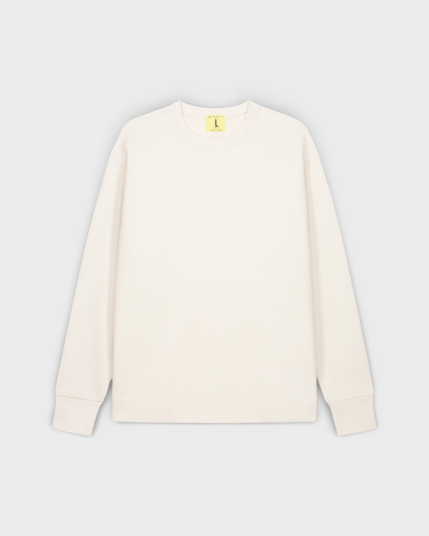 Le Vahé de chez Nitto Knitwear est un tee-shirt à manches longues à la coupe droite décontractée avec une épaule tombante, il évoque l'allure d'un sweat tout en bénéficiant du confort et de la légèreté du tricot. Son tricotage en maille gaufrée, en jauge 14, offre une texture subtile et une maille serrée, garantissant un beau tombé ainsi qu'une grande douceur au porté. Sa coupe travaillée et son touché moelleux en font une pièce aussi agréable que polyvalente, petit détail, une couture américaine traverse le dos apportant encore plus de caractère à cette pièce. Comme le reste des modèles de la marque, il a été entièrement fabriqué en France dans l'atelier familial à Clamart.