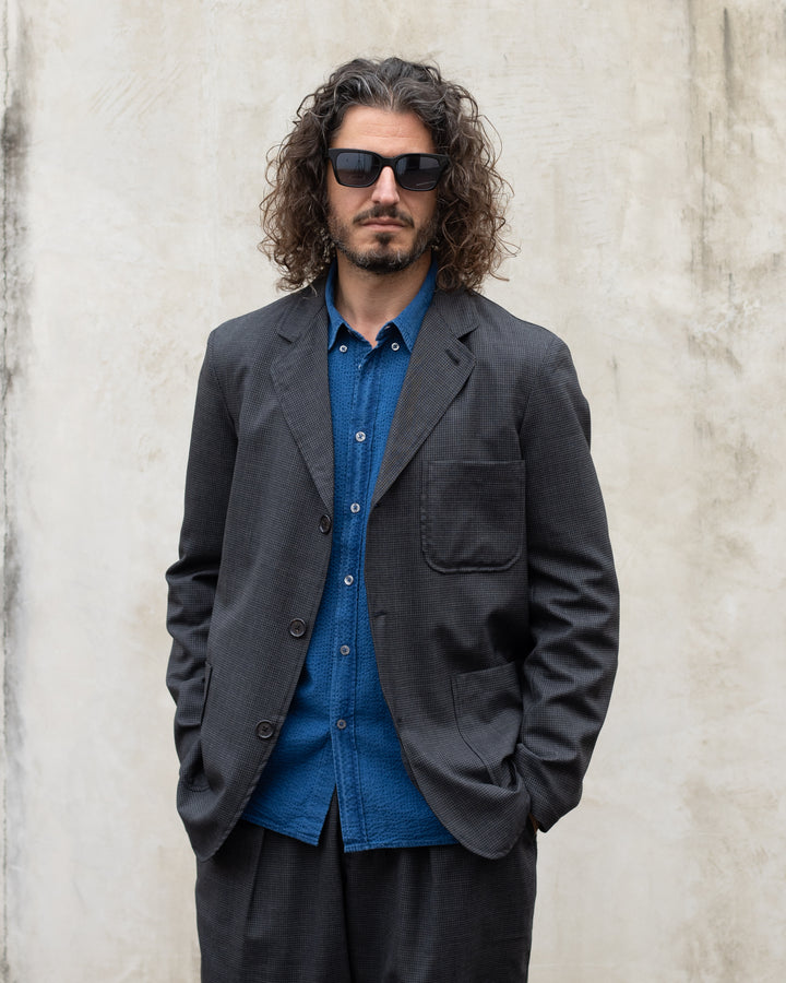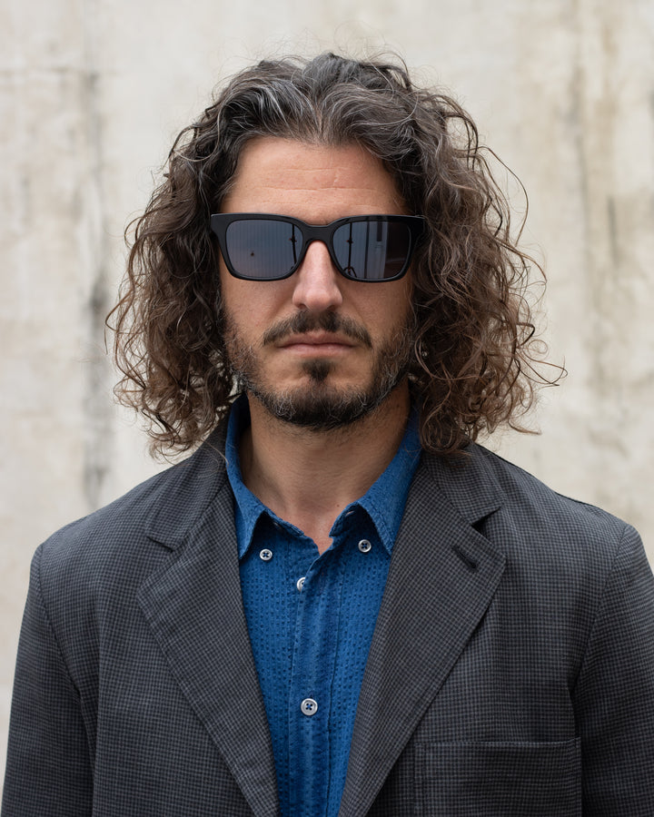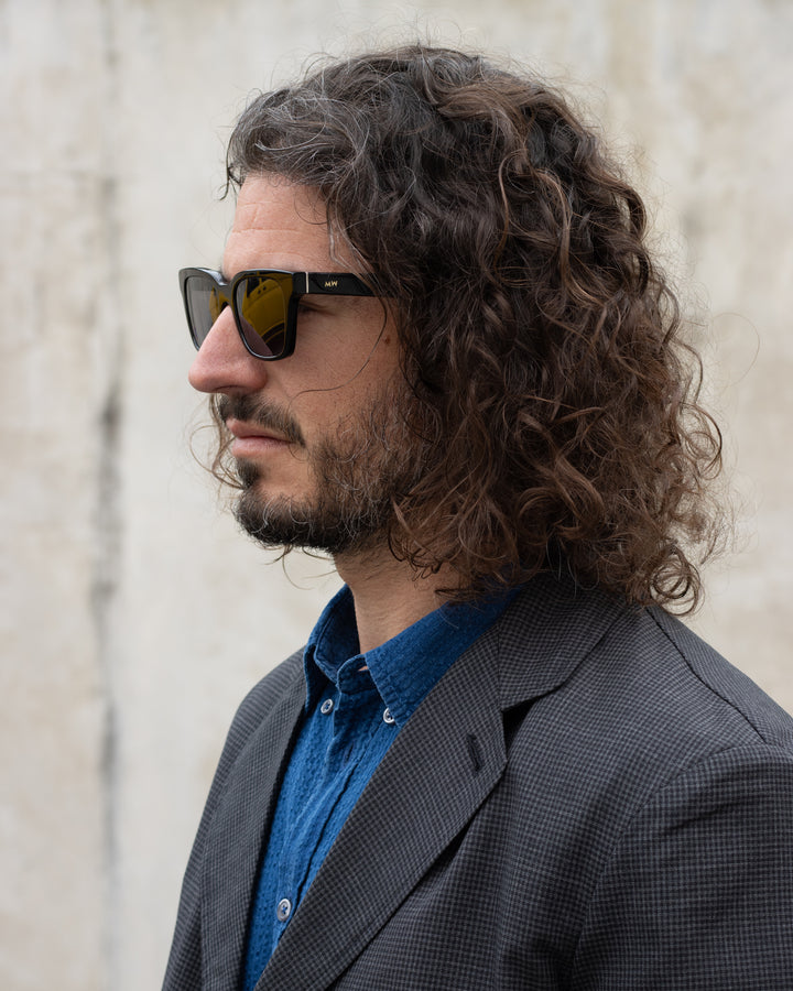 Les lunettes sont fournies avec une pochette en microfibre permettant des les protéger et de les nettoyer. Sur les photos Alexis porte également une veste et une chemise Universal Works.