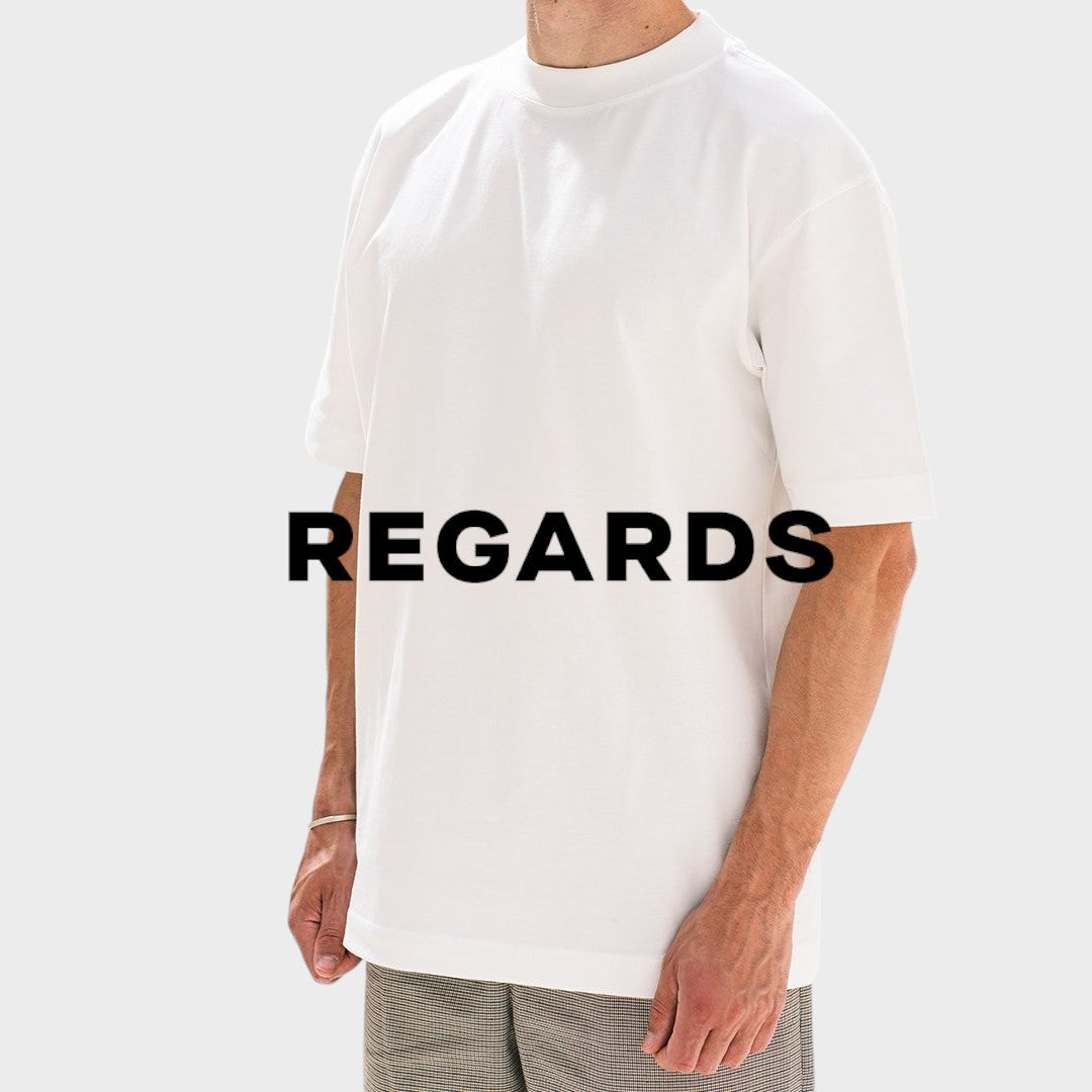 Regards conçoit des vêtements aux lignes épurées avec des volumes maitrisés confectionnés à partir de coton de grande qualité issu de l'agriculture biologique. La marque incarne une vision contemporaine du prêt-à-porter avec un niveau d'exigence élevé sur la qualité de fabrication, leurs vêtements témoignent de l'idée que le luxe ne doit pas être une question de prix mais une norme de qualité.