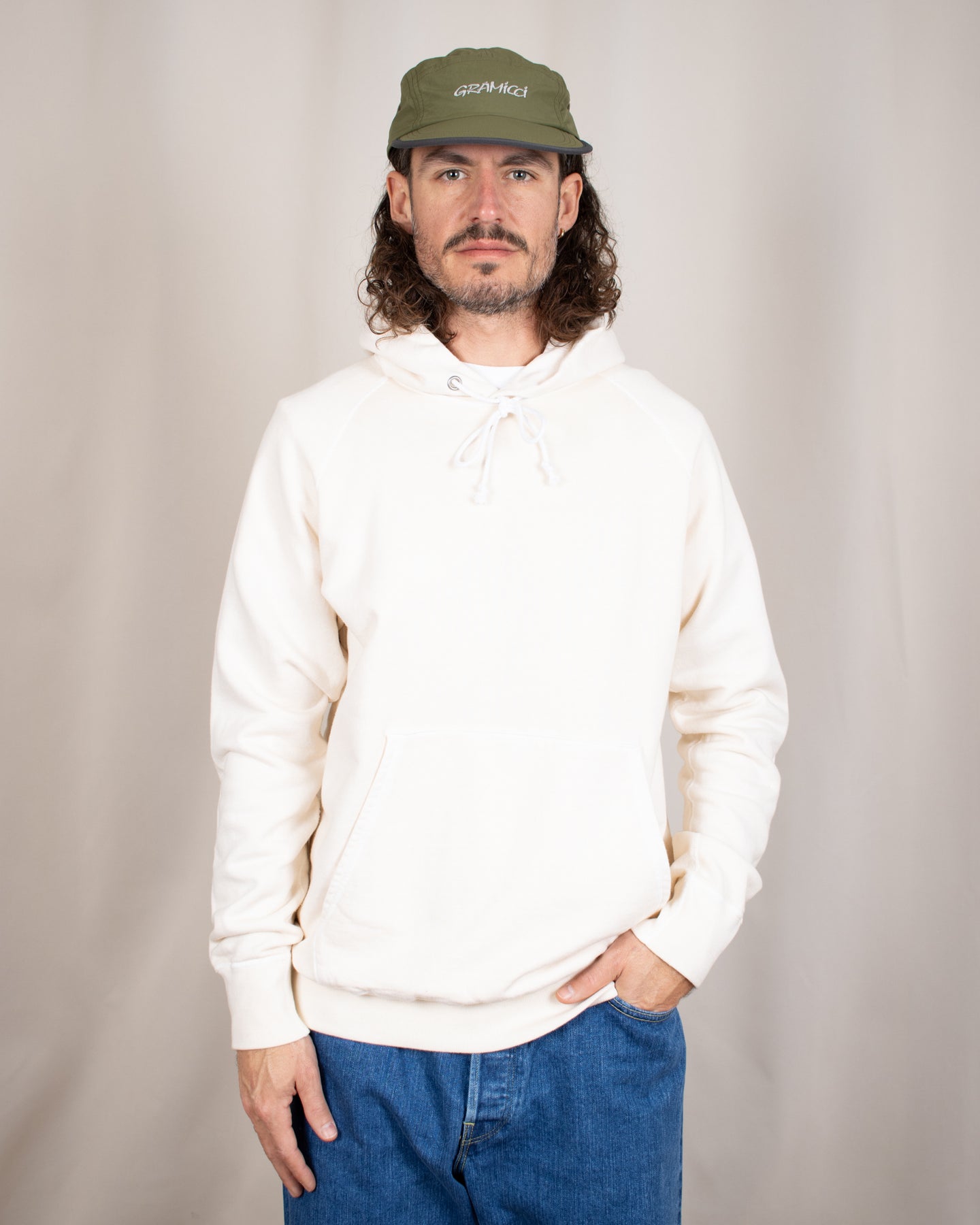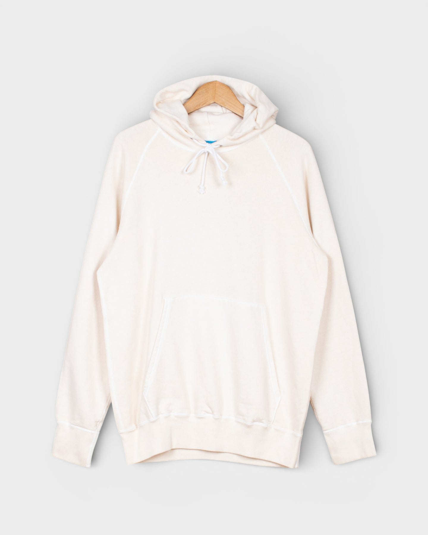 Le Raglan Pullover Hood Sweat de chez Good On est un hoodie confectionné dans un jersey French Terry en 100% coton d’épaisseur moyenne, offrant une texture douce et une chaleur modulable. Doté de manches raglan pour une liberté de mouvement optimisée, d’une capuche à cordon et d’une poche kangourou généreuse, il combine confort, fonctionnalité et silhouette soignée. Entièrement fabriqué et teint au Japon selon le procédé de teinture pigmentaire propre à Good On, chaque pièce développe une patine unique et un style vintage qui s’embellit avec le temps.
