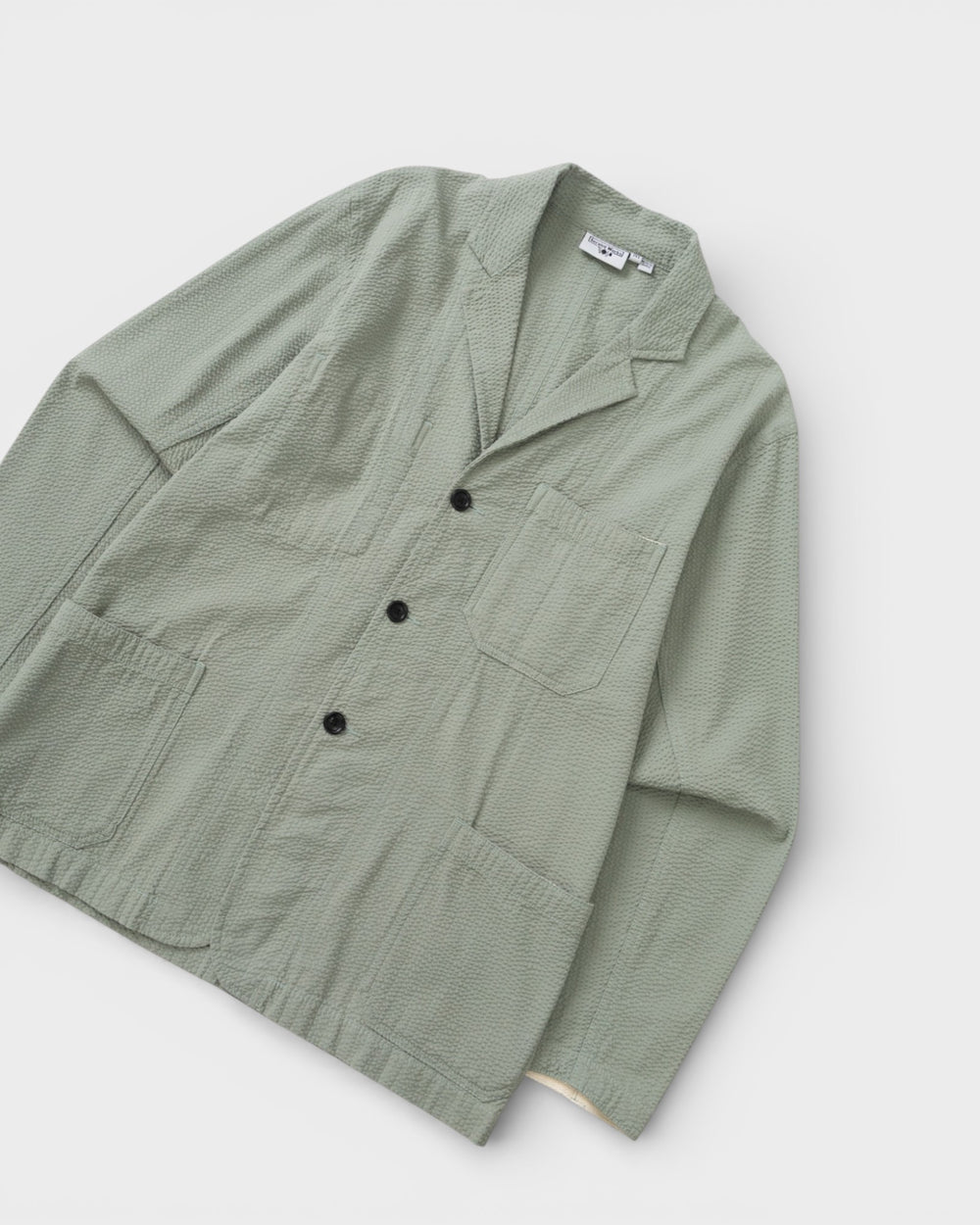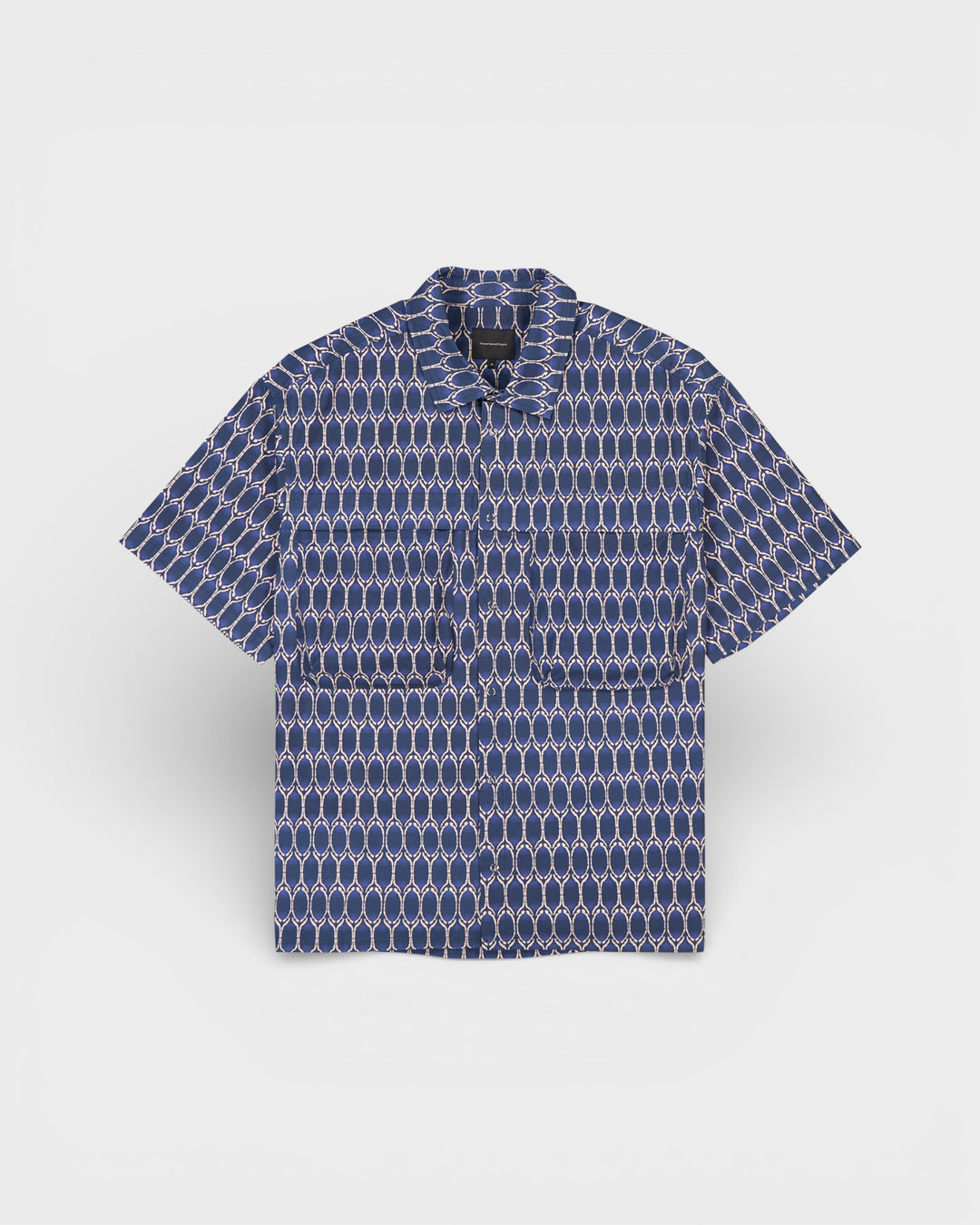 Short Sleeve Baggy Shirt Seersucker Sky Stripes