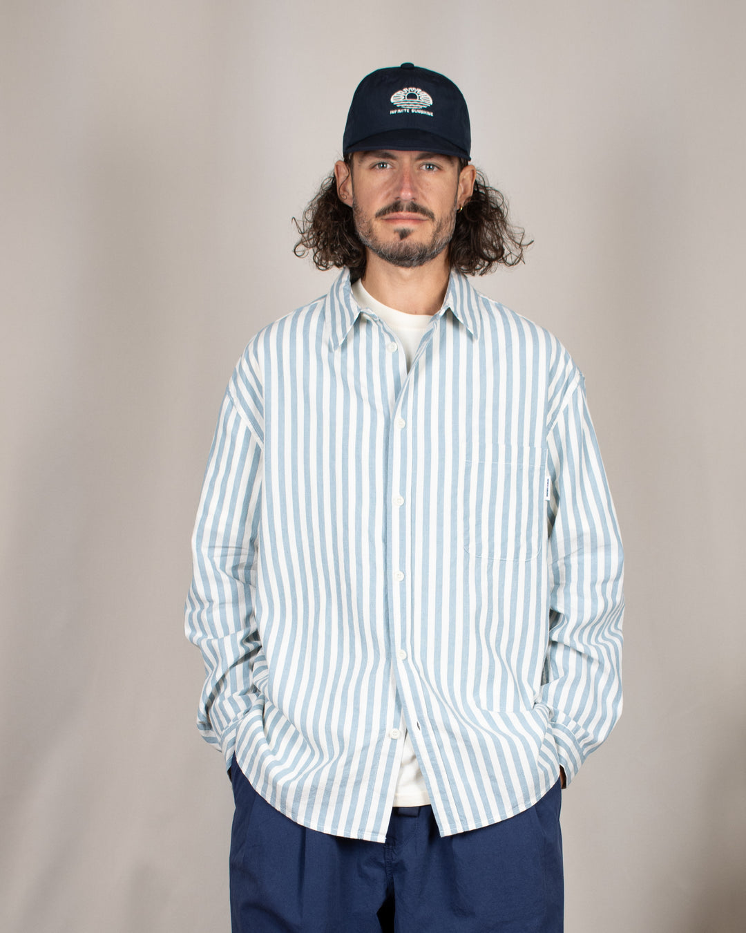 Stripe Pocket Work Shirt Ivory