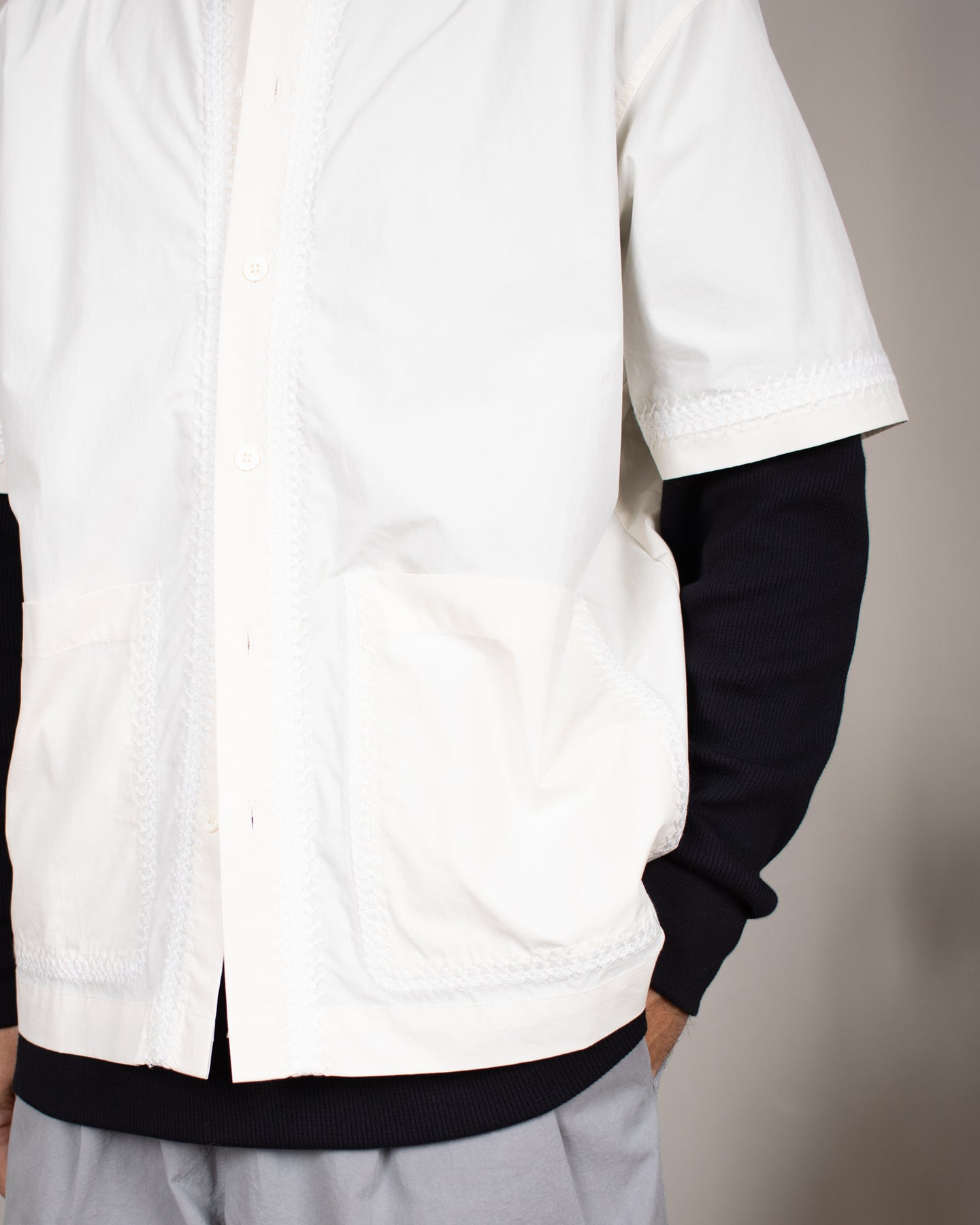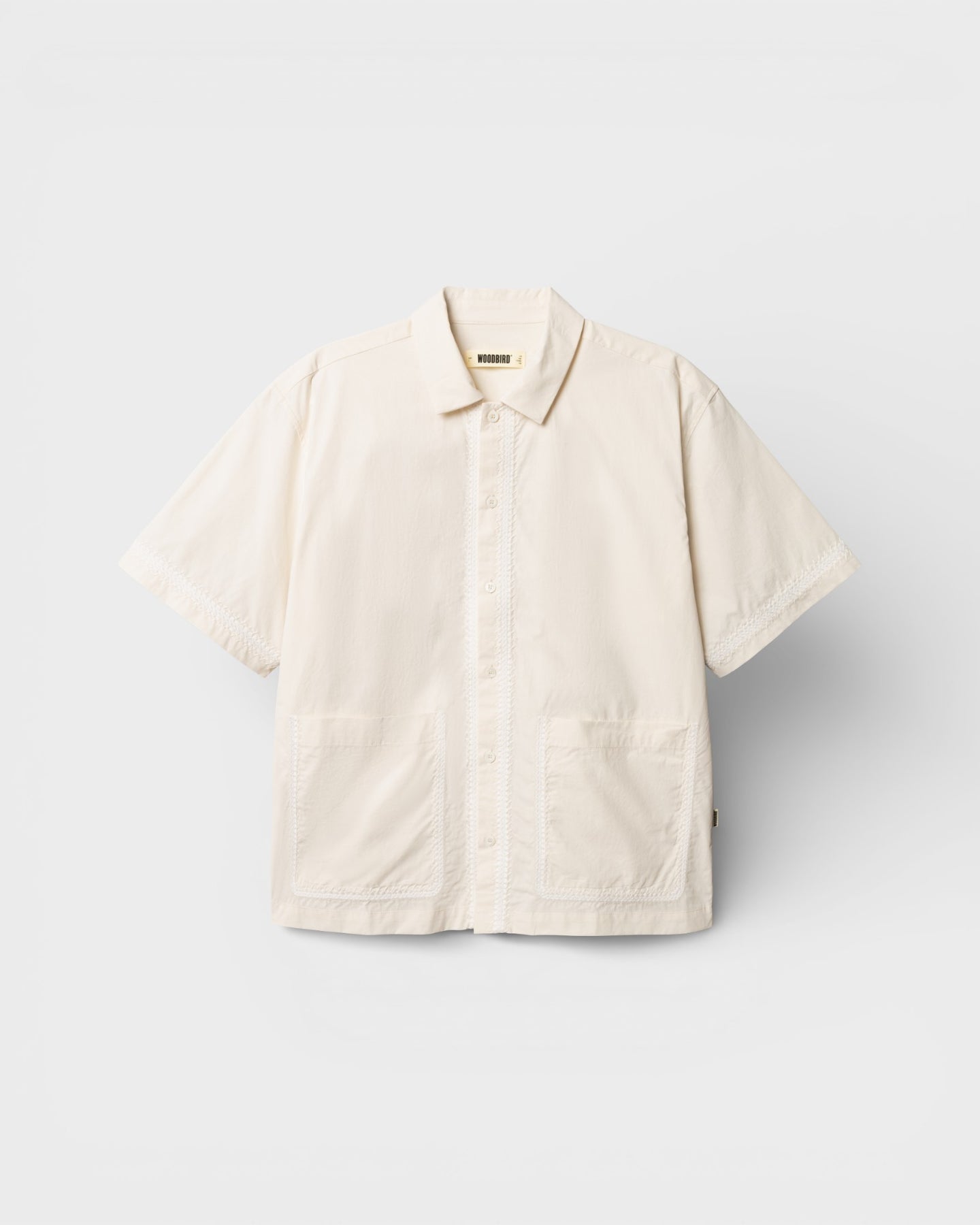 La Wang Line Shirt de chez Woodbird est une chemise à manches courtes au style minimaliste inspiré de l’esthétique scandinave de la marque. Confectionnée en 100% coton, elle offre un tissu confortable et respirant adapté à un usage quotidien. Sa coupe loose et boxy crée un tombé ample et décontracté, idéal pour les saisons plus chaudes. Le modèle est doté d’un col classique, d’une fermeture frontale boutonnée et de deux grandes poches plaquées sur la poitrine. Des broderies décoratives le long de la patte de boutonnage, des manches et du dos apportent une texture subtile et une finition graphique à cette pièce épurée.