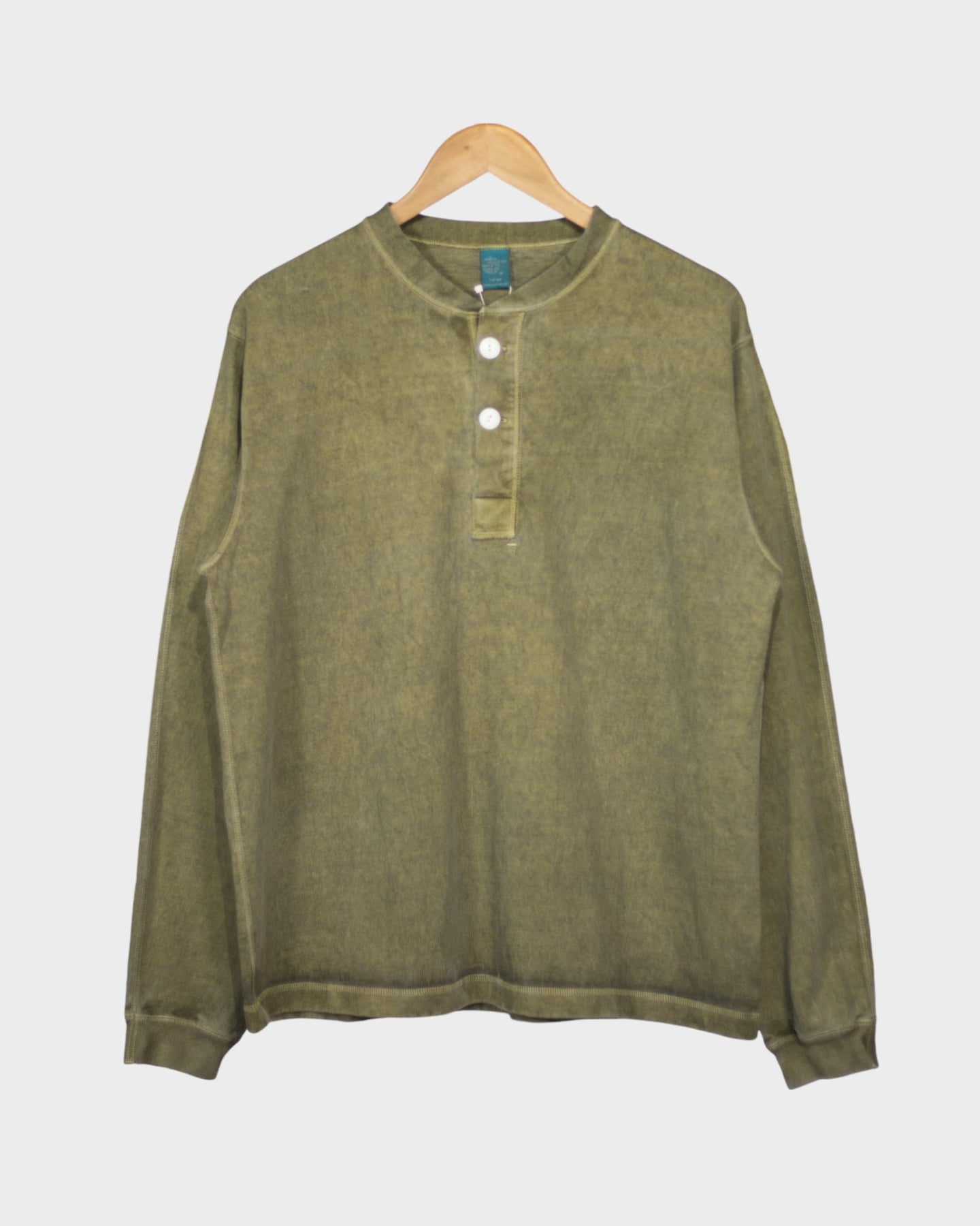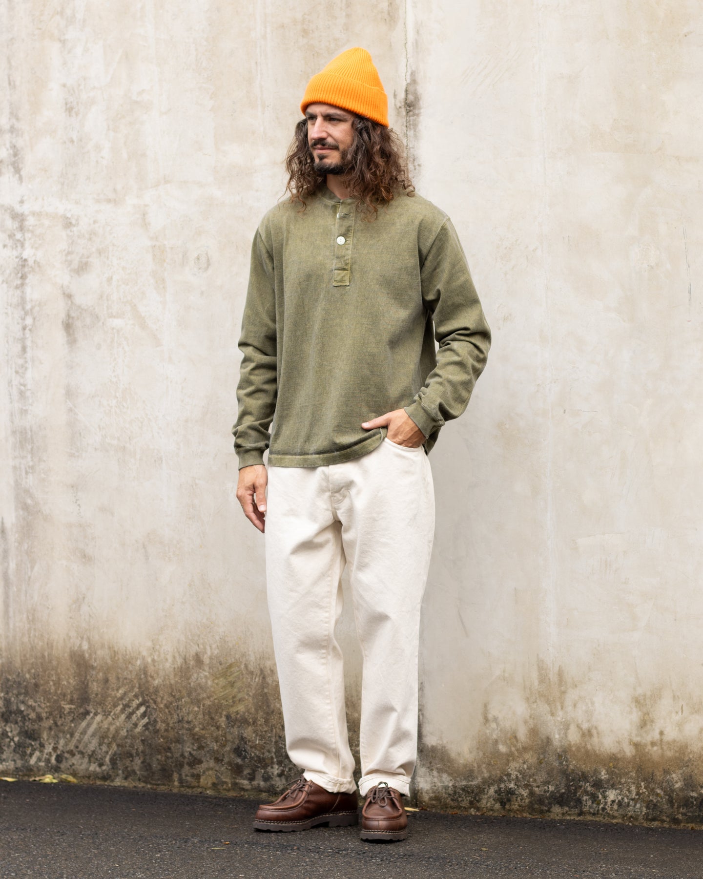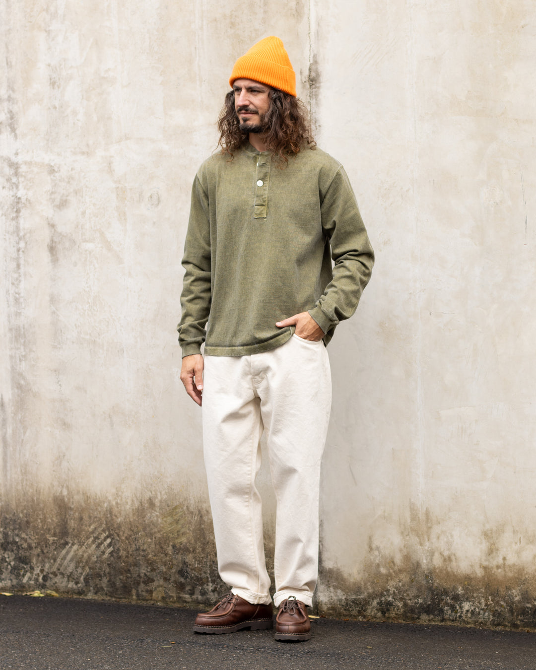 Le Long Sleeve Heavy Henley de chez Good On est un tout nouveau design de la marque. Un tee-shirt à manches longues avec un col henley confectionné dans un coton américain lourd et épais de 9 oz. Ce tee-shirt est entièrement fabriqué et teint au Japon en utilisant le procéder de teinture pigmentaire propre à Good On, conférant à chaque pièce une patine unique et un style vintage qui lui permettra de s'embellir avec le temps.