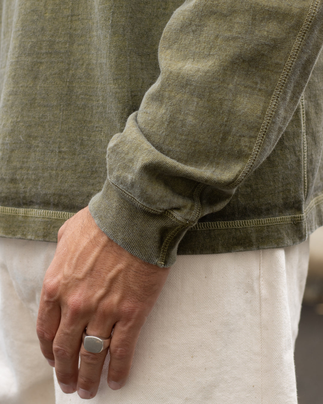 Ce procédé de teinture, dit "pigment dye", est la spécialité de Good On, elle donne à chaque pièce une patine unique et un style vintage. C'est l'un des fabricants qui propose la plus grande palette de couleurs pigmentaires, avec de nouvelles teintes chaque saison.
