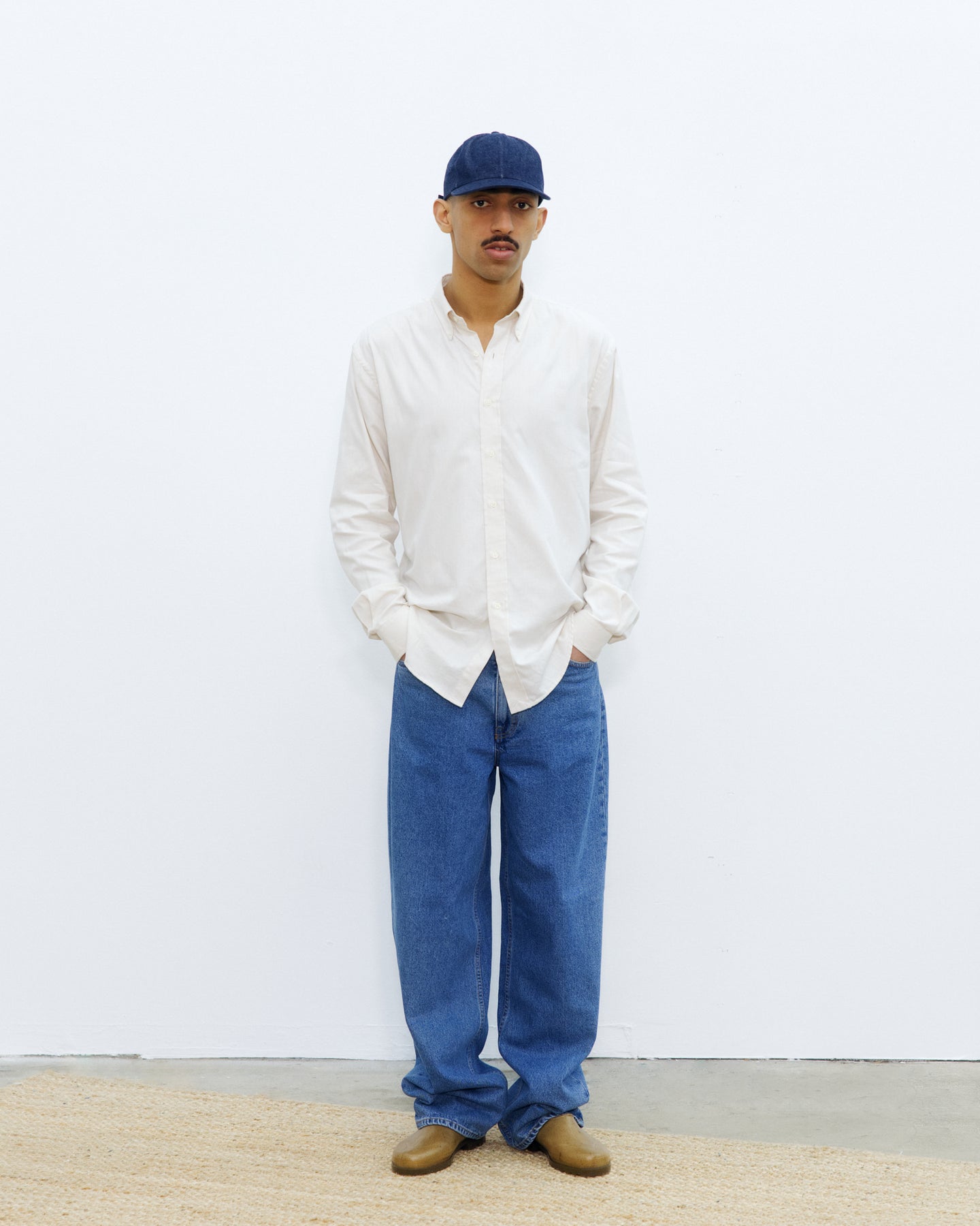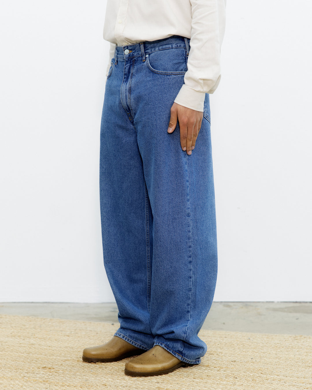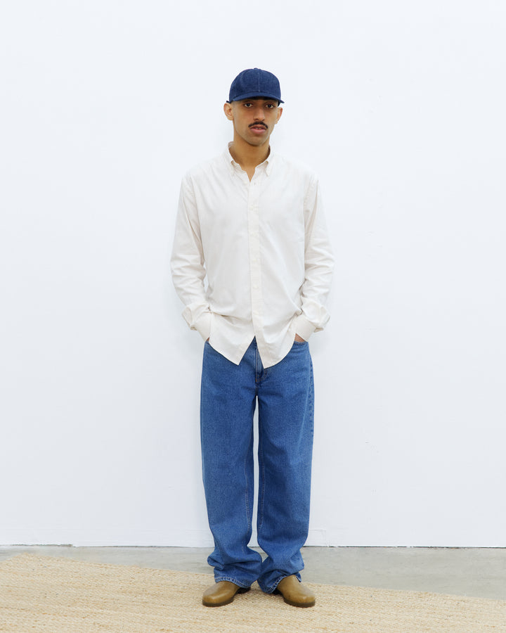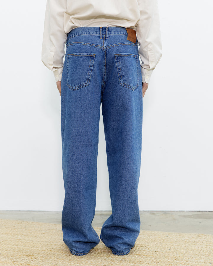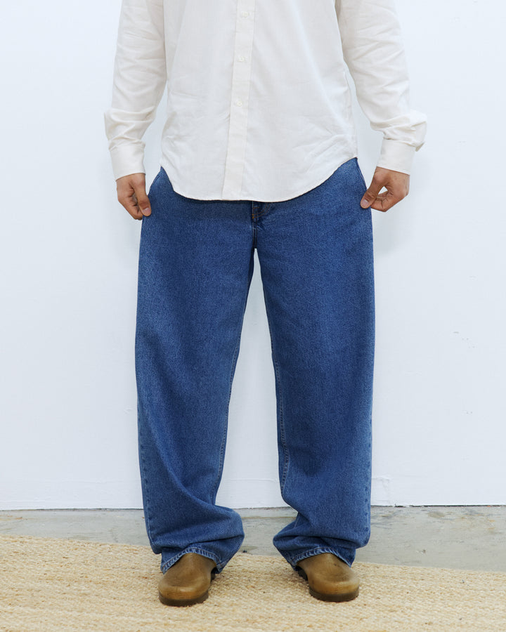 Le jean DN.09 bleu 3 ans de chez Ateliers de Nîmes dispose d'une coupe baggy aux volumes parfaitement maitrisés. Ce jean est confectionné dans une toile denim en coton biologique d'une épaisseur de 13oz, une toile tissée au sein des ateliers de la marque dans la ville de Nîmes et soigneusement assemblée à Barcelos au Portugal.