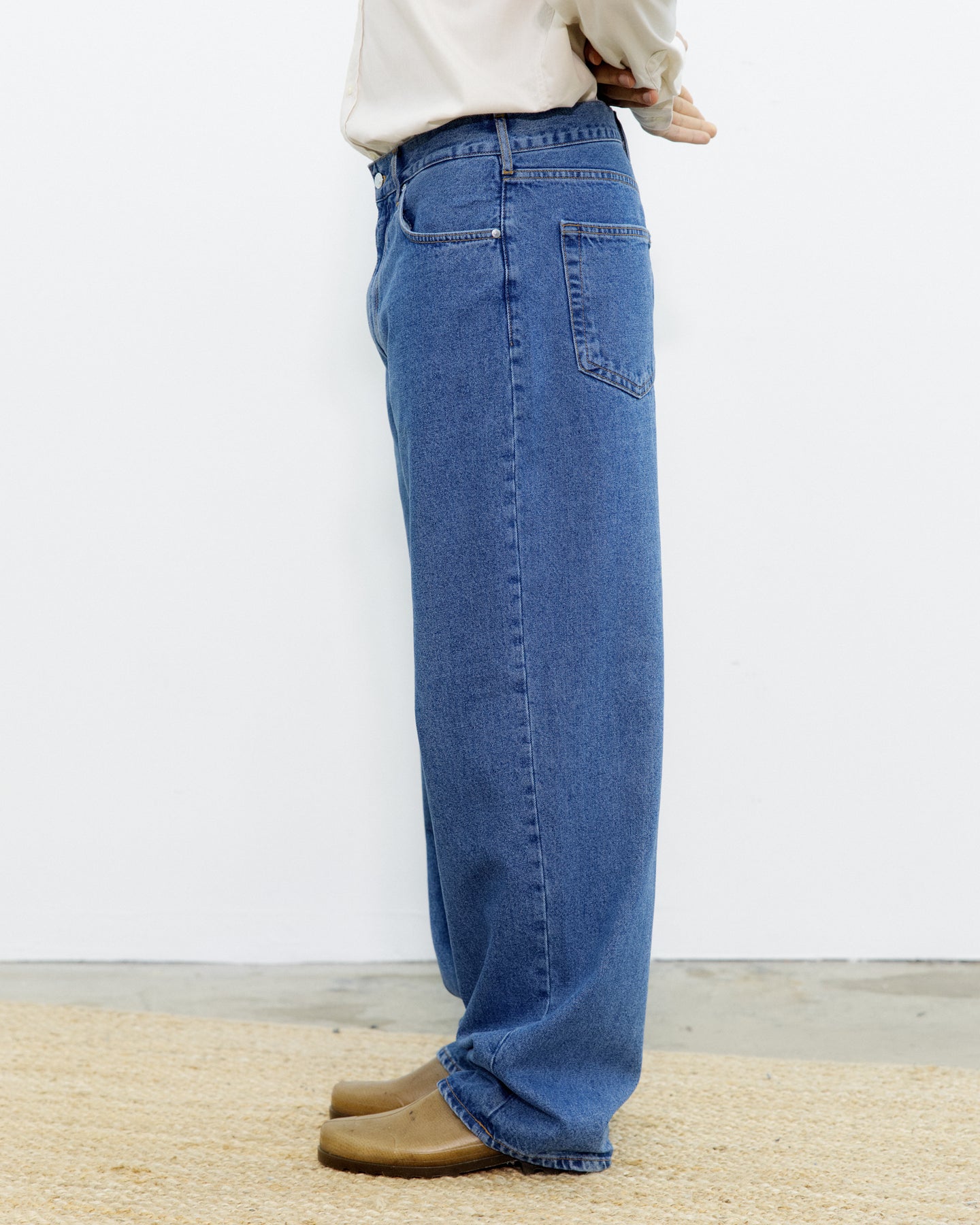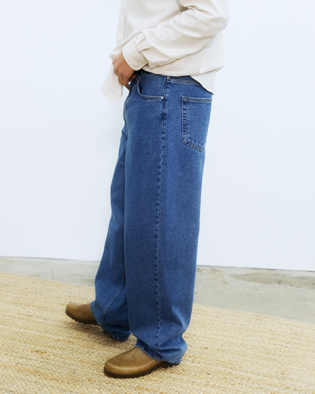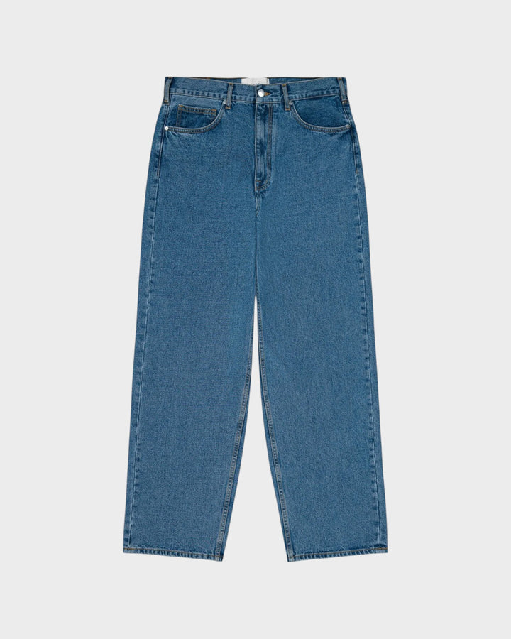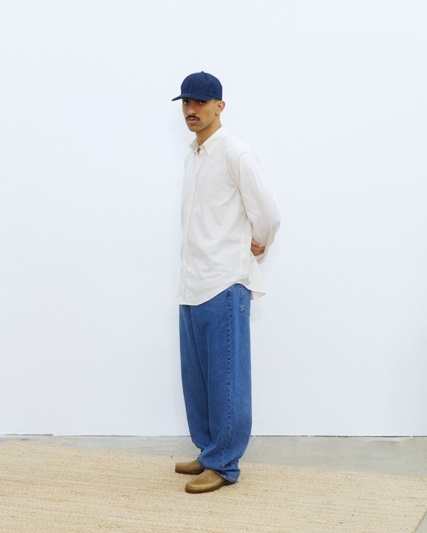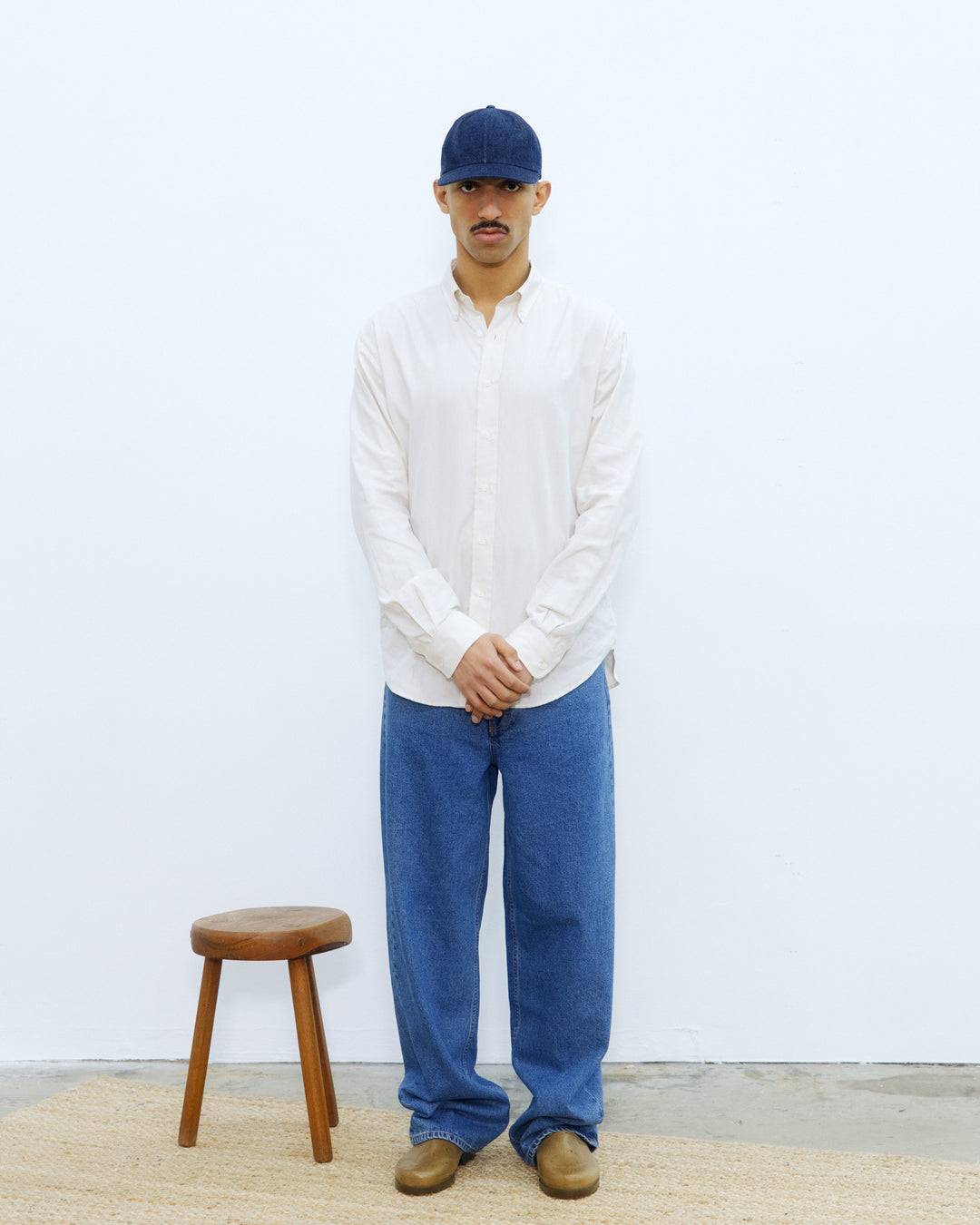 Le jean DN.09 bleu 3 ans de chez Ateliers de Nîmes dispose d'une coupe baggy aux volumes parfaitement maitrisés. Ce jean est confectionné dans une toile denim en coton biologique d'une épaisseur de 13oz, une toile tissée au sein des ateliers de la marque dans la ville de Nîmes et soigneusement assemblée à Barcelos au Portugal.