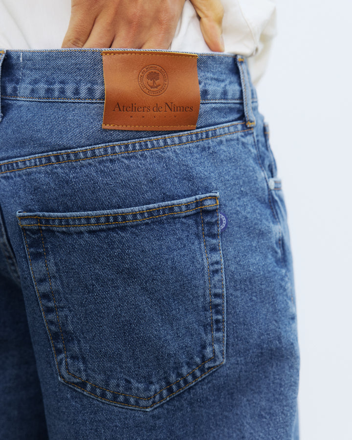 Ateliers de Nîmes est la seule marque au monde à proposer des toiles en coton bio confectionnées avec une technique du 17ème siècle, le fil retors, doublé et torsadé, donc beaucoup plus solide lors du tissage. Il en résulte une économie d'eau de 75% par rapport à un jeans classique, tout en évitant l'utilisation de colles et de solvants.