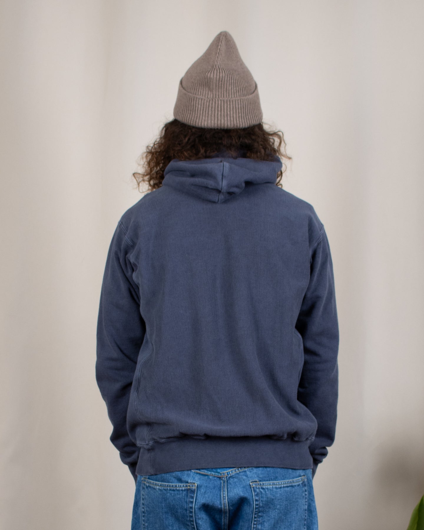 Ce hoodie taille légèrement petit, n'hésite pas à te référer à notre guide des tailles. Sur les photos Alexis porte également un bonnet Nitto Knitwear, un jean Hatski et des chaussures Garment Project.