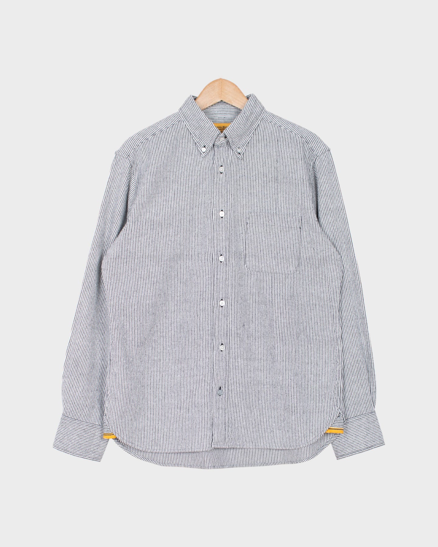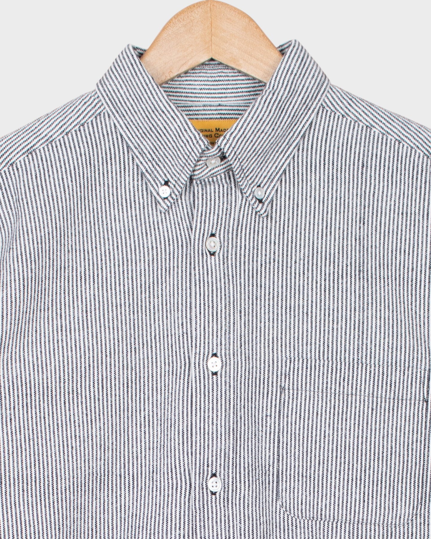 La N°5 Classic Button Down de chez Original Madras est une chemise à manches longues à la coupe droite décontractée avec un col boutonné généreux et une poche poitrine. Dans cette version elle arbore un motif à rayures noires sur une base blanche. Cette chemise est confectionnée dans un tissu Madras traditionnel de poids moyen, elle est tissée à la main sur des métiers à tisser exclusifs dans les ateliers de la marque en Inde.