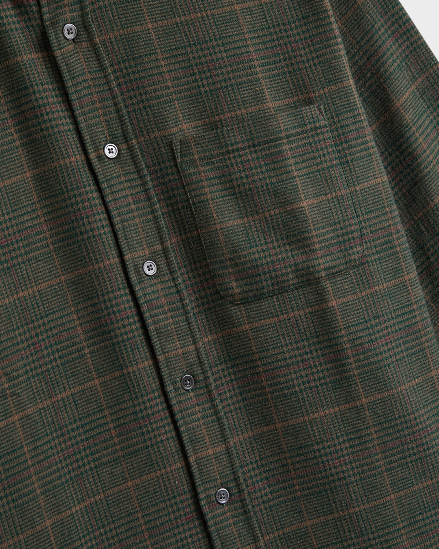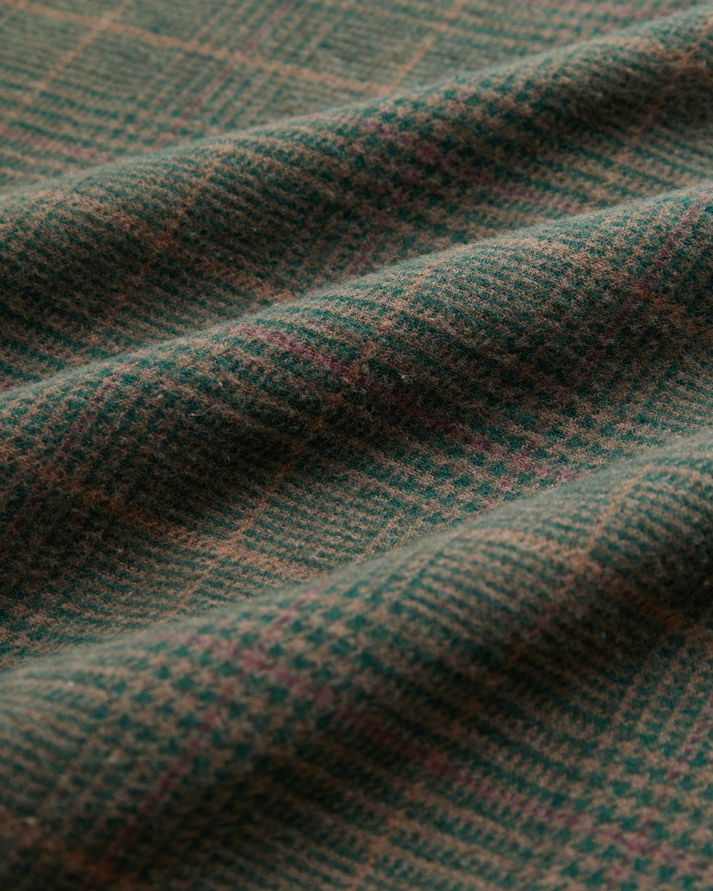 La Lake de chez Portuguese Flannel est une chemise confectionnée à partir d'une flanelle d'épaisseur moyenne extrêmement douce, caractéristique du savoir-faire de la marque. Elle arbore un motif à carreaux sur une base verte. Une chemise idéale à porter par temps froid ou en surchemise de mi-saison.