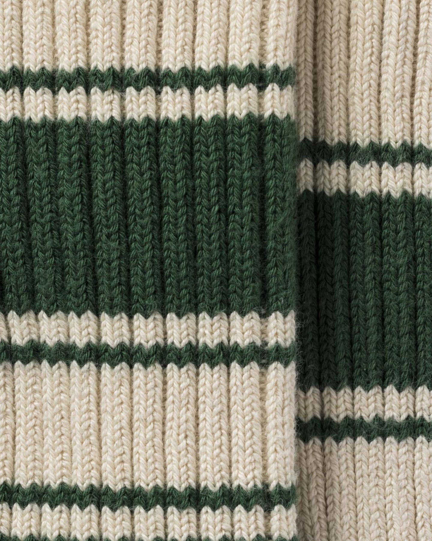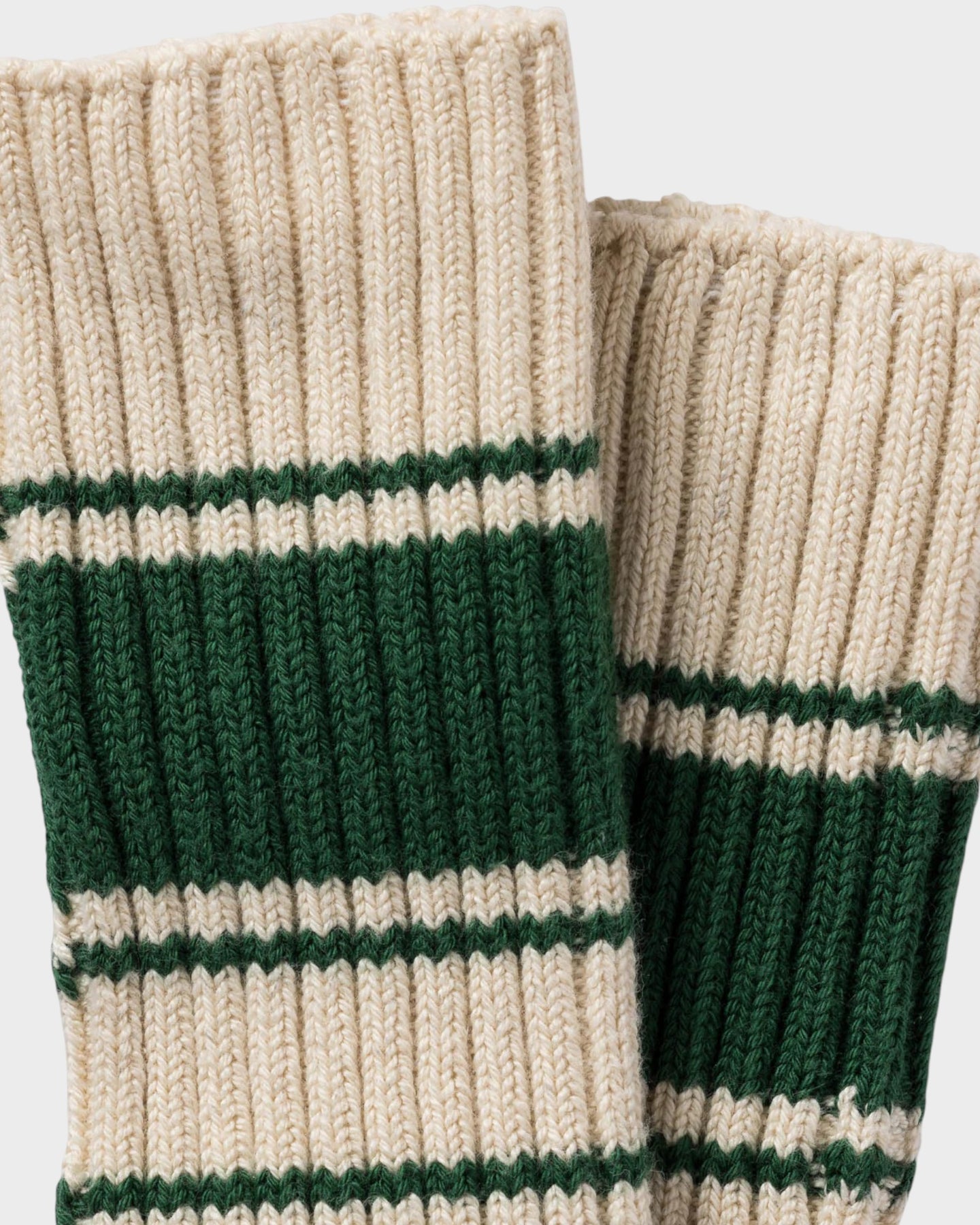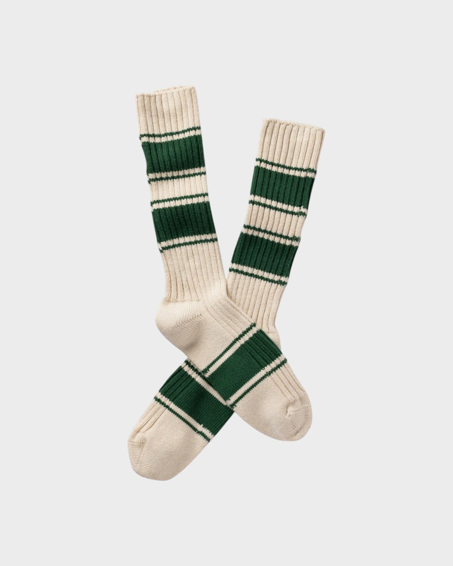 Les Stanislas de chez Royalties Paris sont des chaussettes rayées à côtes généreuses confectionnées en mélange de coton biologique. Des chaussettes sportswear revisitées dans une version luxe de la chaussette athlétique. En effet, leur épaisseur et la qualité du fil, à la fois doux et super aéré, leur donne un aspect vintage. Sur fond écru, 3 bandes de rayures monochrome viennent créer un aspect moderne et graphique.