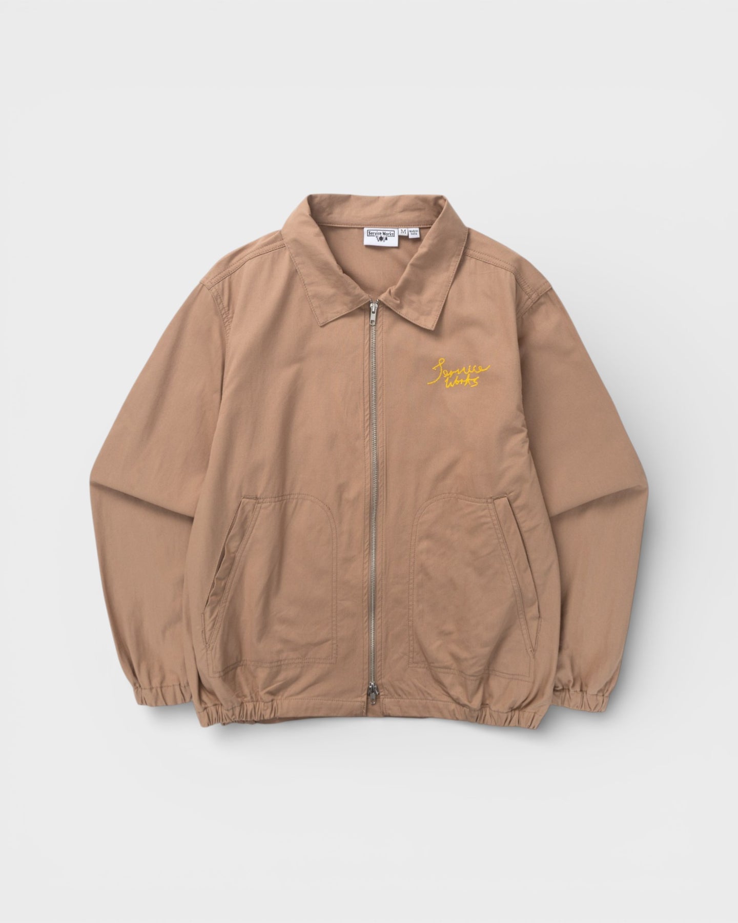 La Twill Work Jacket de chez Service Works est une veste de travail légère inspirée des vestes de garage classiques. Confectionnée en twill 100% coton biologique certifié GOTS d’un grammage de 250 g/m², elle offre une construction durable tout en restant respirante et agréable à porter au quotidien. Teinte en pièce pour obtenir une couleur olive profonde et un aspect légèrement patiné, elle développera du caractère au fil du temps. Dotée de deux poches passepoilées surpiquées et d’une fermeture zippée, cette veste allie fonctionnalité et esthétique workwear. Les graphismes brodés en point de chaînette sur la poitrine gauche et dans le dos apportent une signature visuelle inspirée de l’univers utilitaire de la marque.