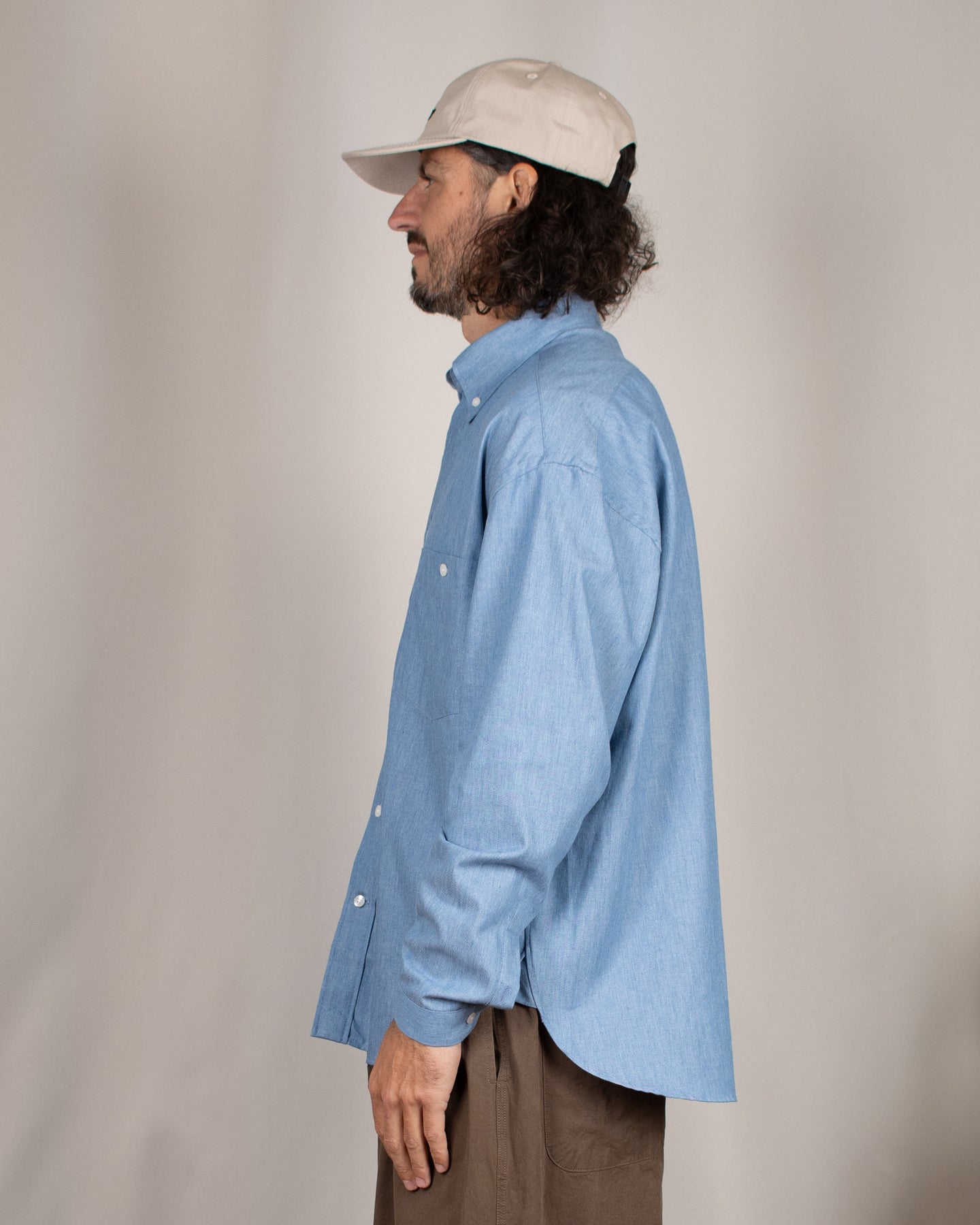 Long Sleeve Baggy Shirt Cotton Light Indigo