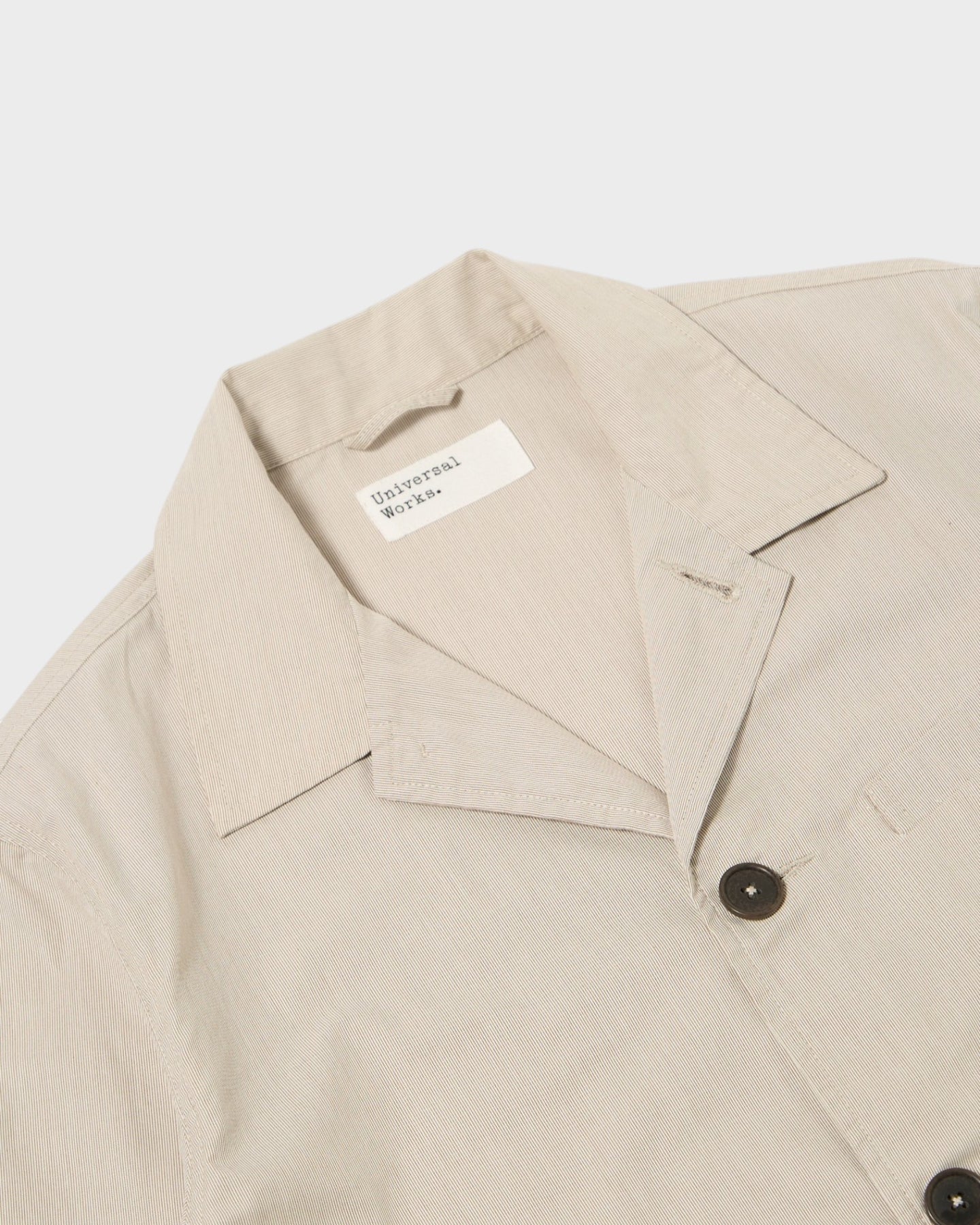 La Franck Jacket de chez Universal Works est une veste courte inspirée à la fois du tailoring classique et de l’univers workwear. Elle se distingue par sa coupe régulière légèrement raccourcie et son col plat d’une seule pièce qui peut se porter ouvert pour un style décontracté ou fermé pour une allure plus habillée. Dans cette version Brown Kennedy Stripe, elle est confectionnée dans un coton léger à fines rayures type seersucker, un tissu estival d’inspiration américaine qui apporte texture et respirabilité.